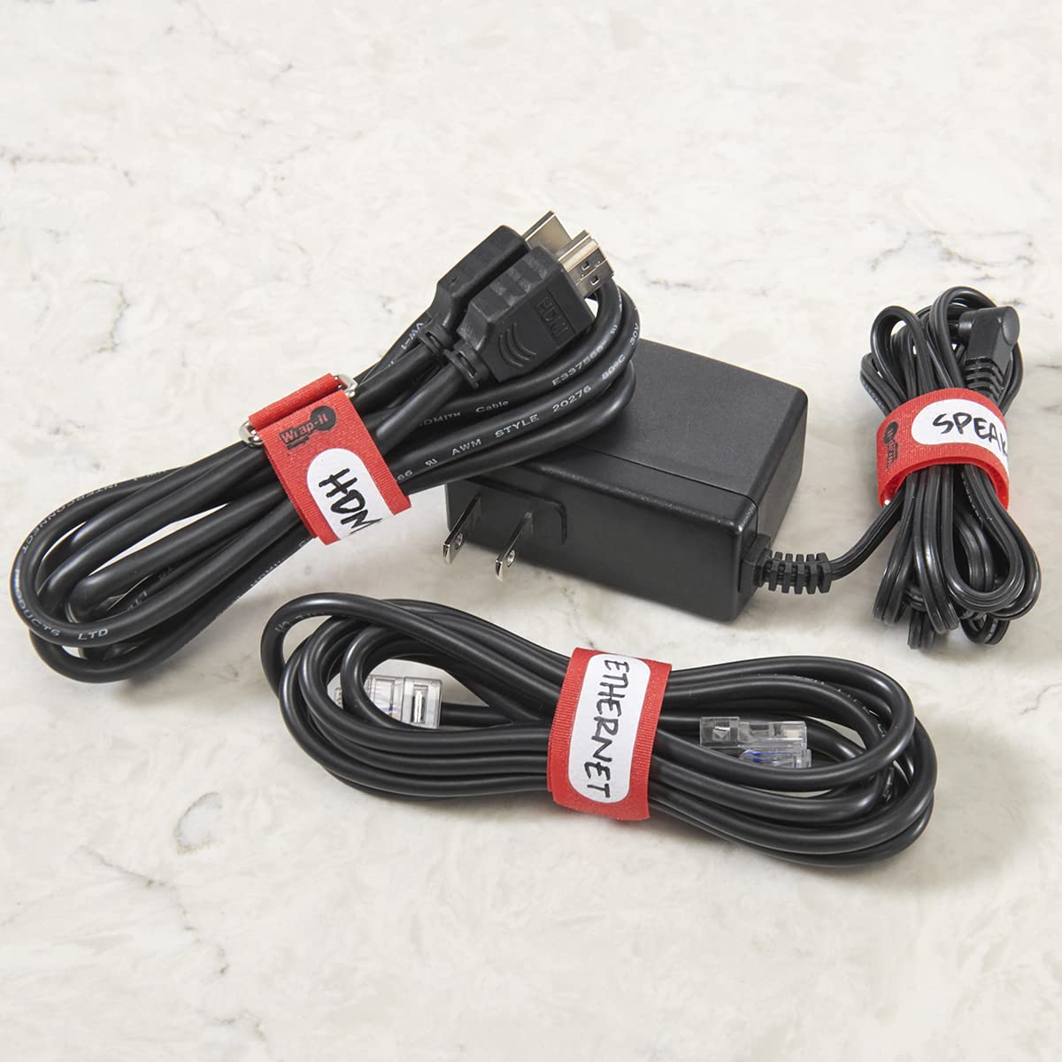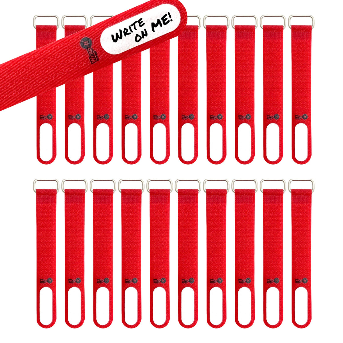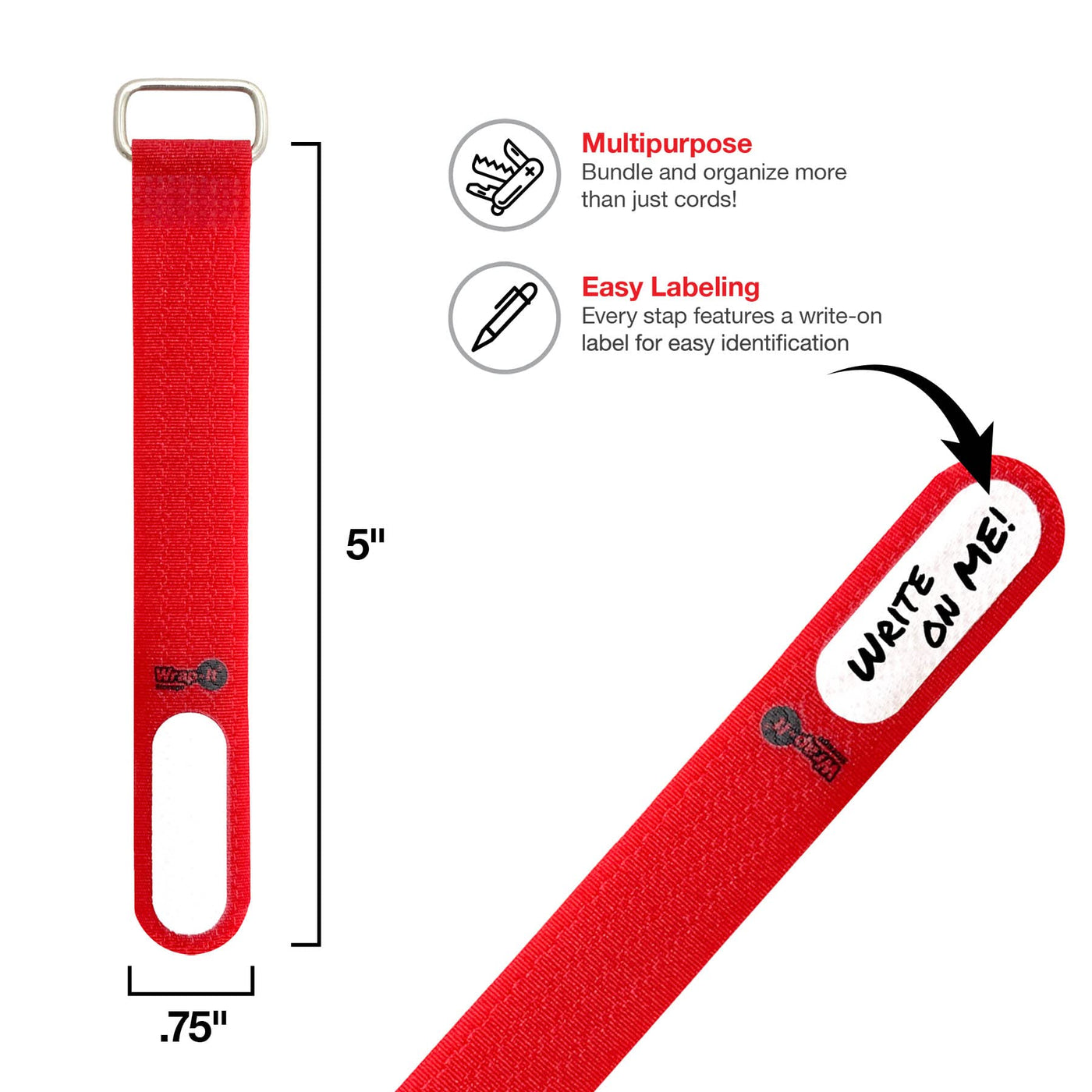 Wrap It Storage Cinch Straps, 5'' 20 Pack (Red), Features Metal Buckle And Write On Label For Easy Cord Identification And Cable