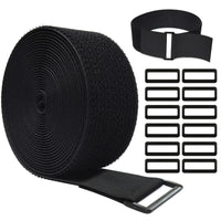 Wszjinb 16Ft X 2In Adjustable Cable Straps With 12 Buckles, Free Cut Length, Black Reusable Fastening Cable Ties, Hook And Loop