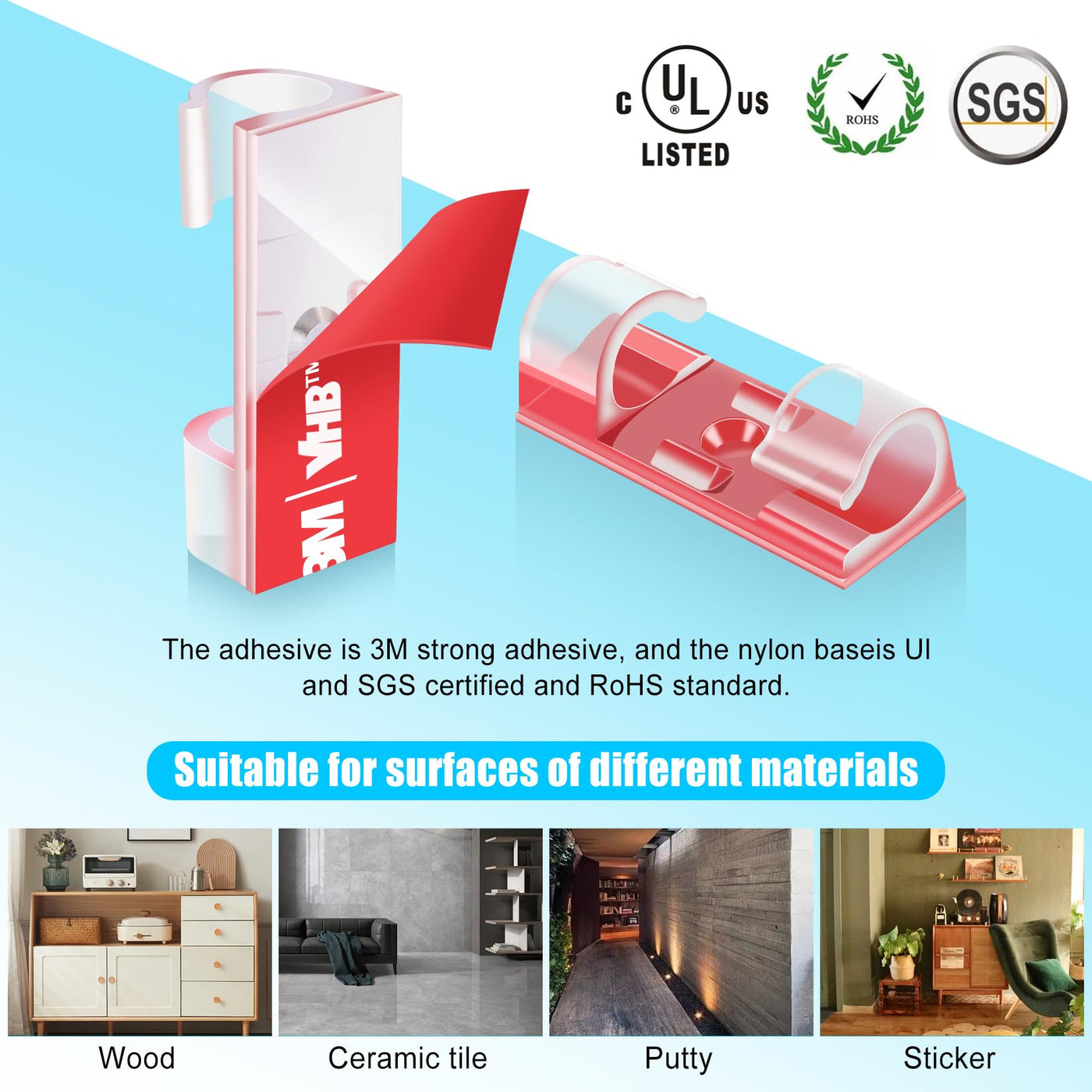 High Quality Material:Xhf Adhesive Cable Clips Are Manufactured From 3M Strong Adhesive And Pa66 Nylon. | Widely Used: Usb Cable, Ethernet Cable, Outdoor String Lights, Led Strip Lights, Tachograph Cable, Tv Cable, Desk And Under Desk Cables, Etc. | Size: Base 1.57'' X 0.59'', Inner Diameter Of Buckle 0.375'' X 0.375''. | Suitable For A Variety Of Object Surface: Whether Glass, Wall, Ceramic, Wood, Metal, Plastic, They Can Stay Firmly On The Surface. | No Residue: Even If You Want To Remove Them, It Can Easily Tear The Whole Piece Of Glue, Without Any Stain.