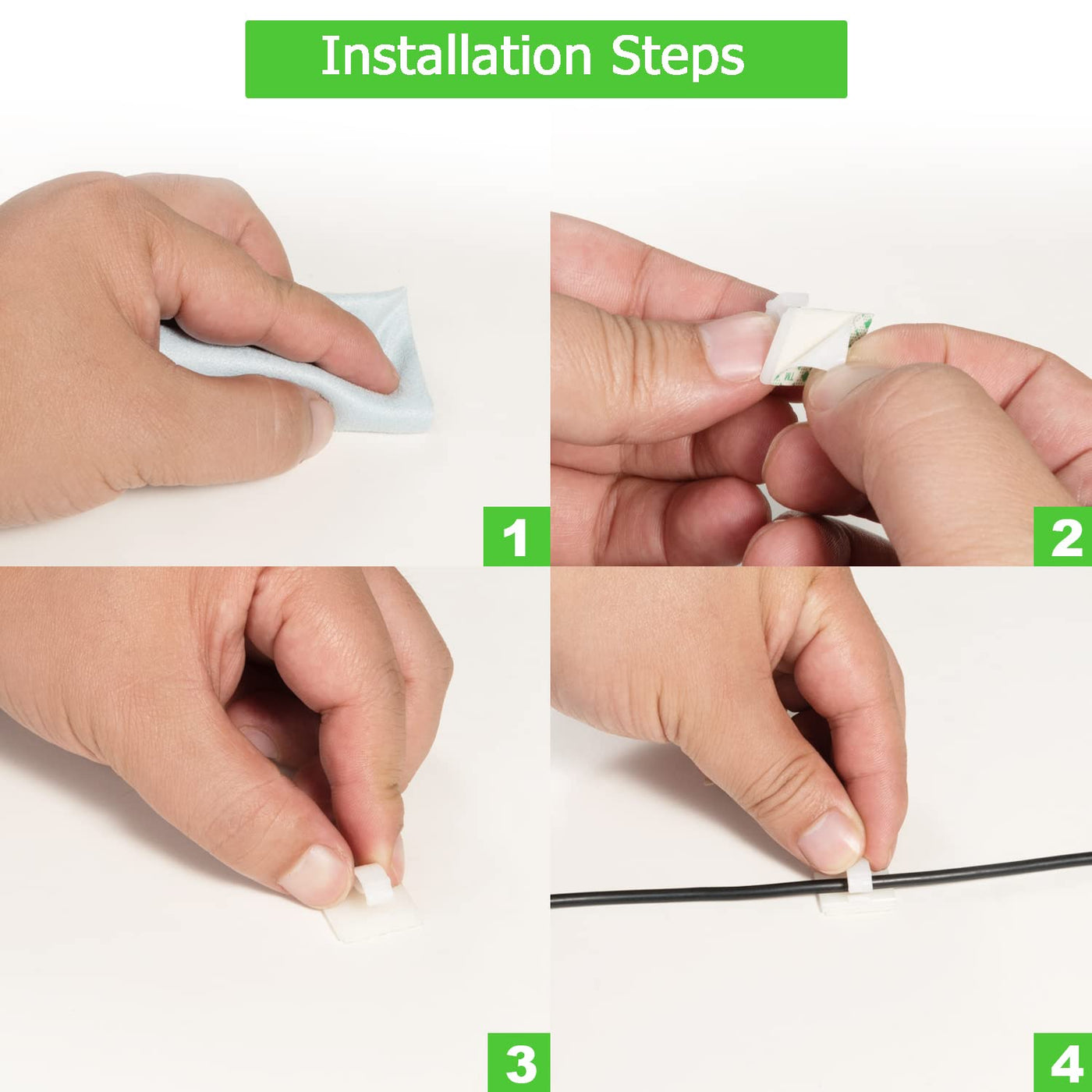 Q: Is the installation of the cable clips easy?A: Yes, the installation is straightforward. Simply peel off the protective film from the bottom of the clips and adhere them to a clean, dry surface. After sticking them on, place your wires into the clips to secure them.