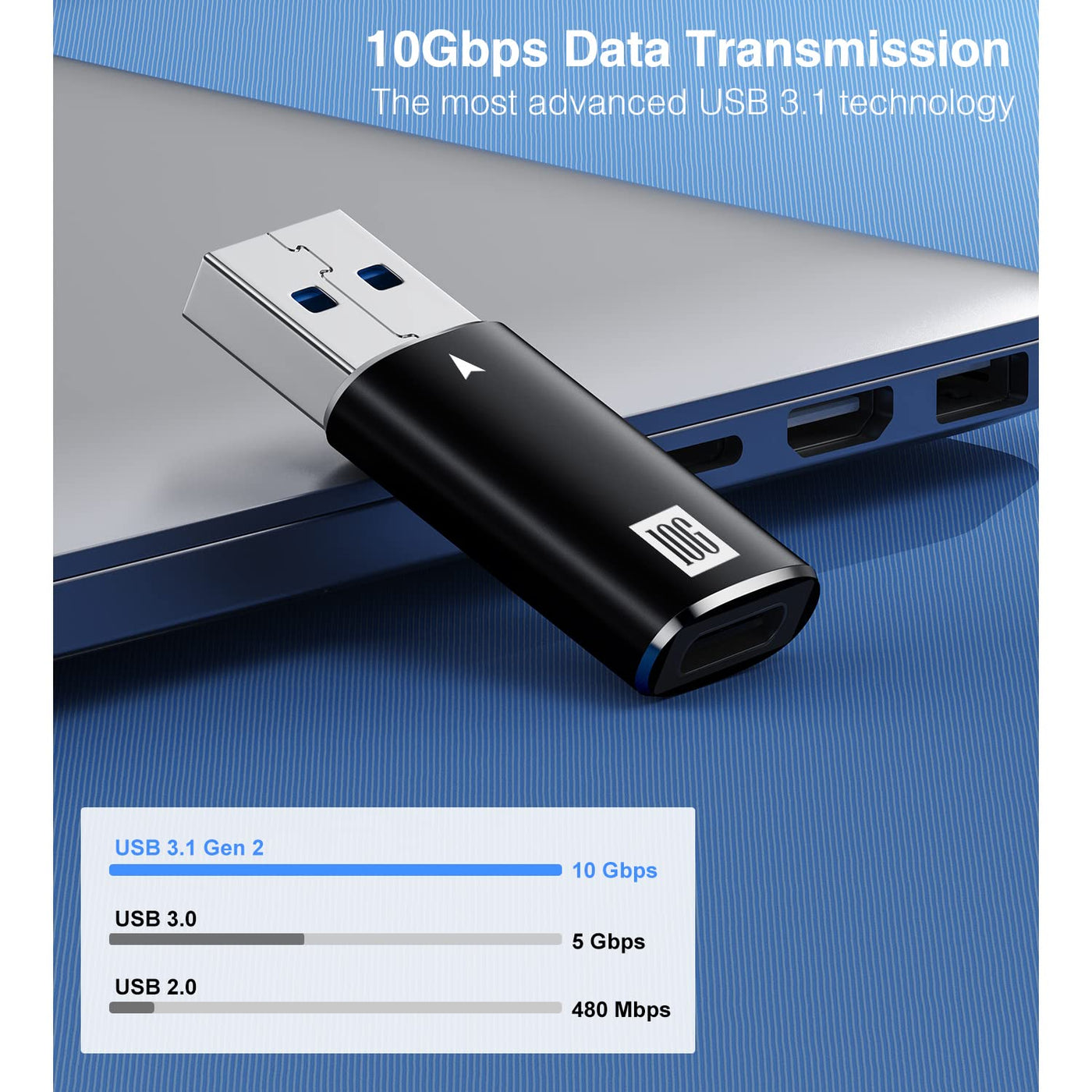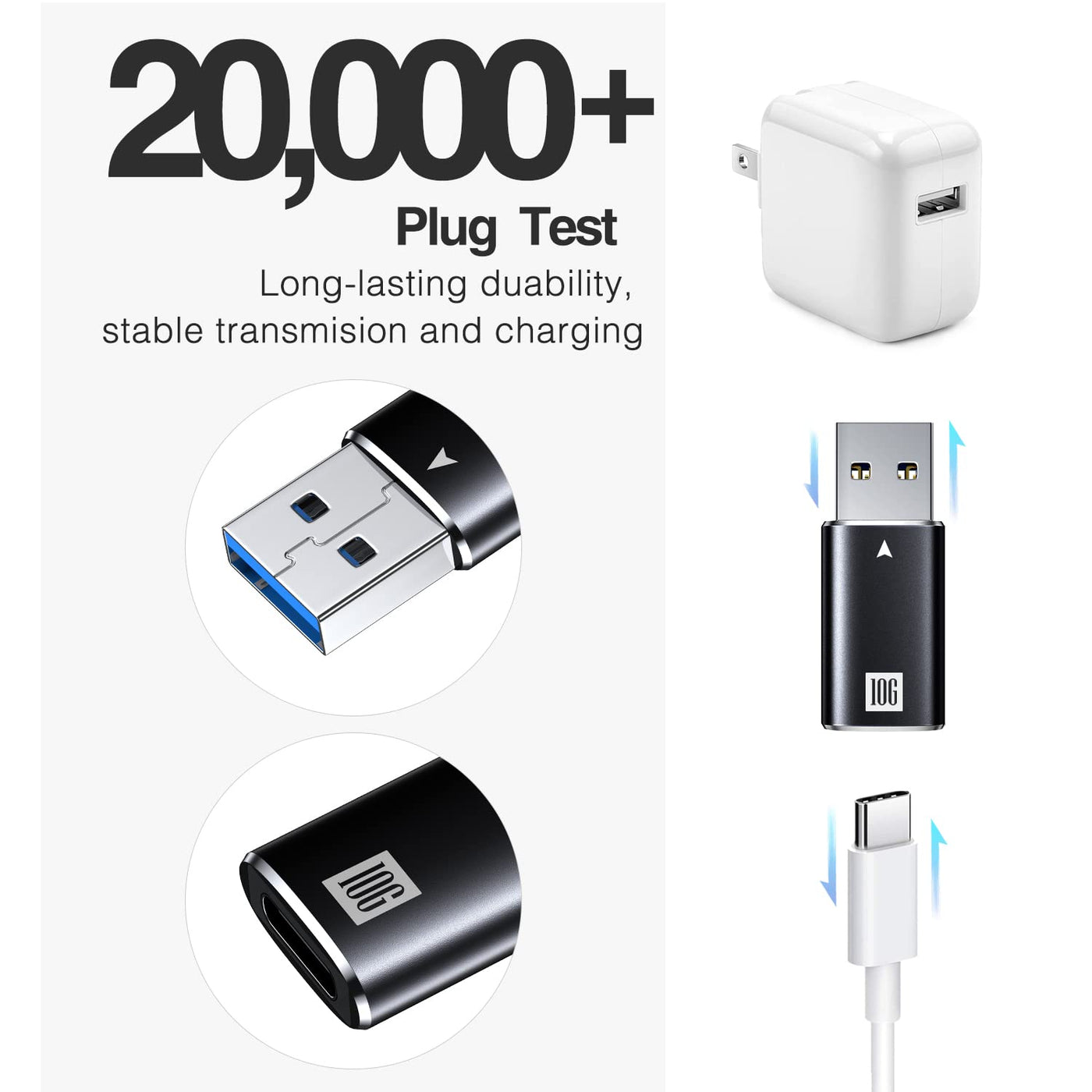 [10Gbps] Usb C Female To Usb Male Adapter, Usb 3.1 A To Usb C Adapter Superspeed Data Sync Compatible With Iphone 16/ Iphone 15 Plus Pro Max,Type C Earphone, Laptop, Charger, Quest Link Black