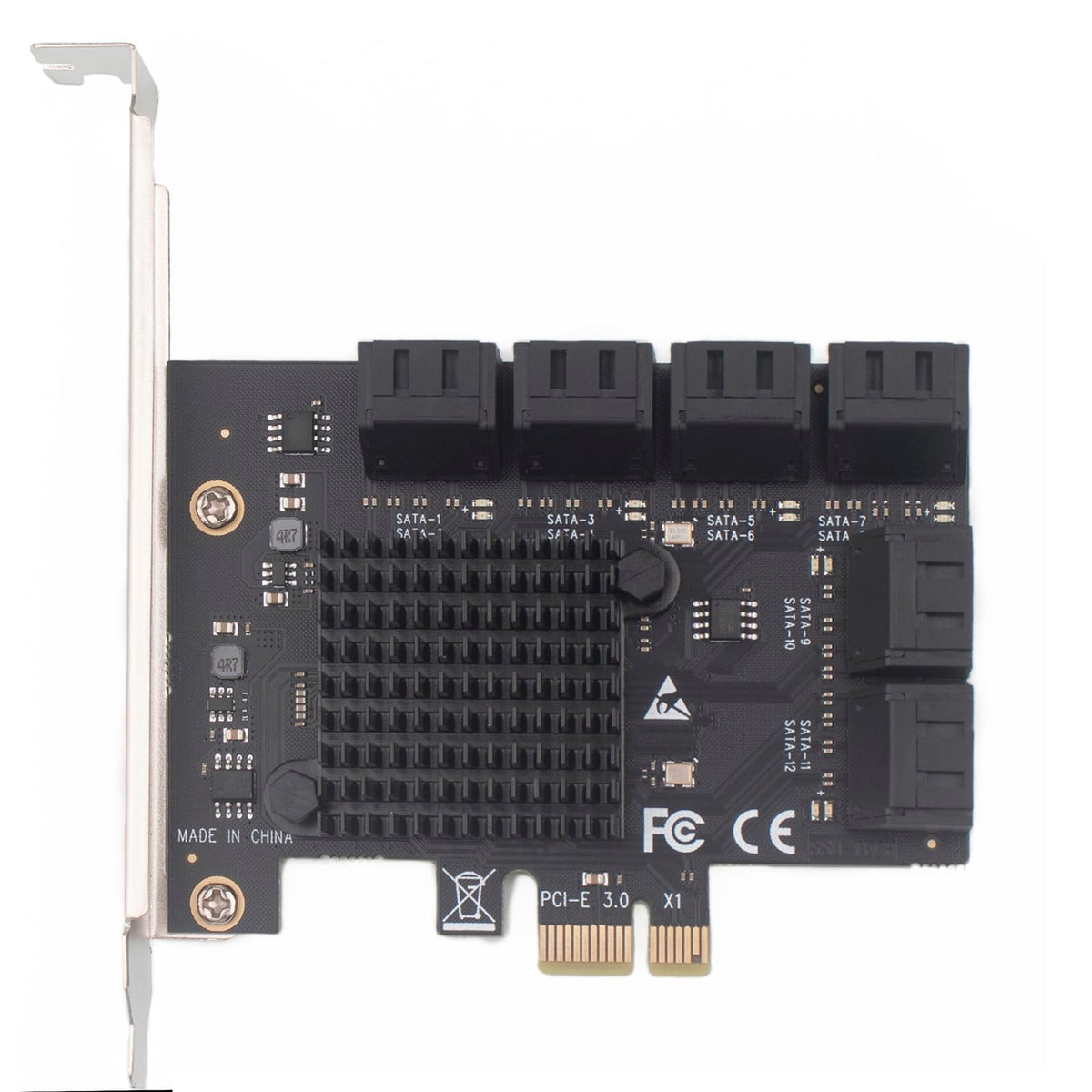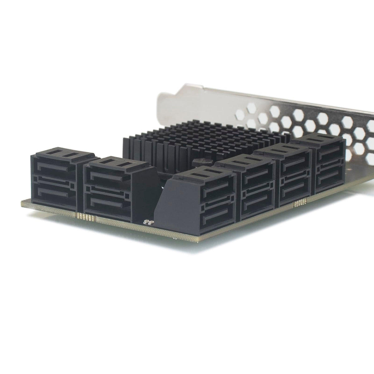 Pci-E To Sata 3.0 Expansion Card - 12-Port Ssd Adapter Card For Windows, Linux, Mac Os And Nas