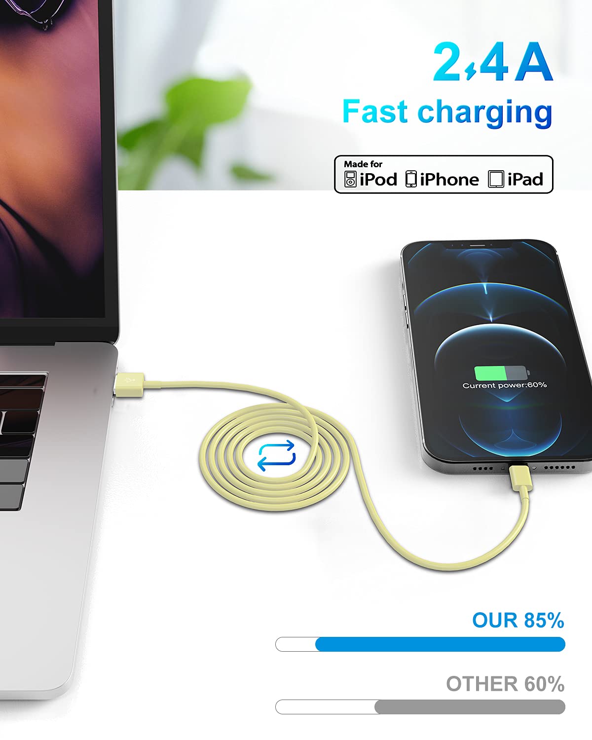 4 Pack [Apple Mfi Certified] Apple Charging Cables 6Ft, Iphone Chargers Lightning Cable 6 Foot, Fast Iphone Charging Cord For Iphone 14/14Pro/13/13Pro/12/11/11Pro/11Max/ X/Xs/Xr/Xs Max/8, Ipad(Yellow)