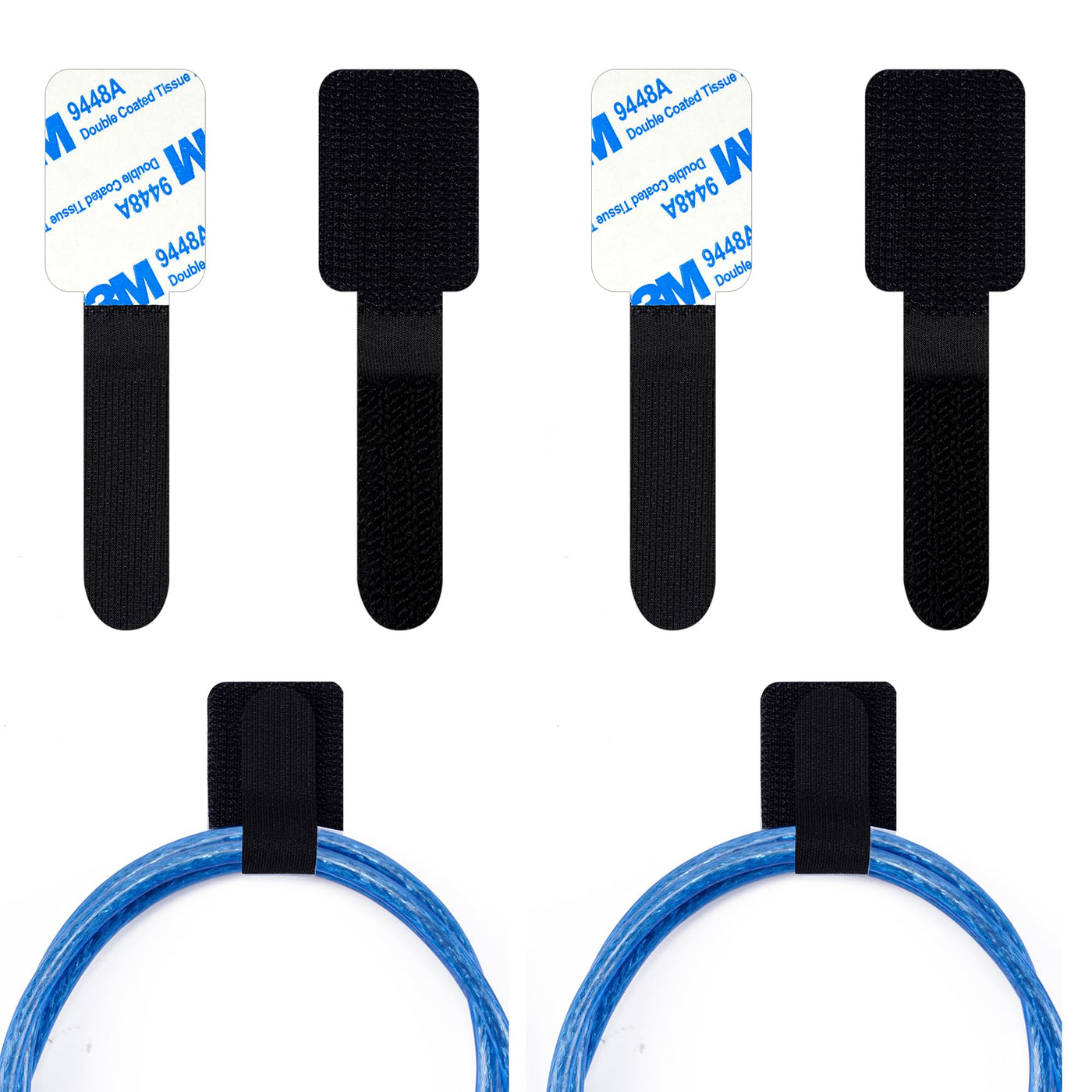 Q: How many cable ties are included in the package?A: The package includes 40 pieces of black adhesive cable ties, providing ample quantity for organizing various cords and cables.