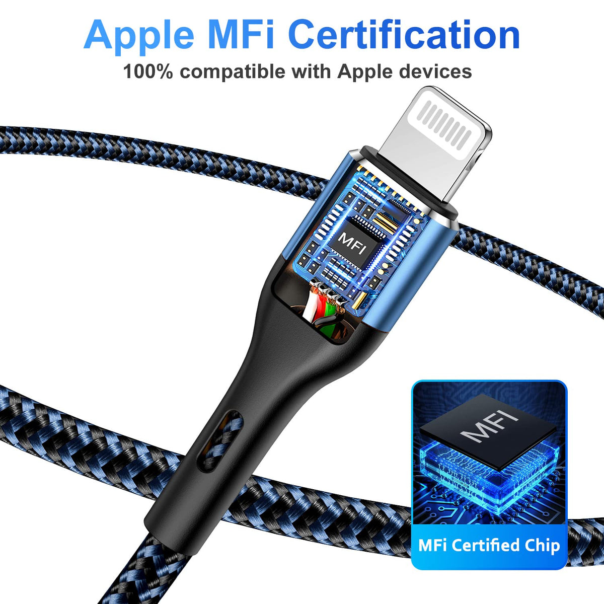 Apple MFi Certified: Our lightning cable is equipped with an original Apple chip, ensuring 100% flawless compatibility with all Apple devices. Fully supports the latest iOS versions for seamless performance.