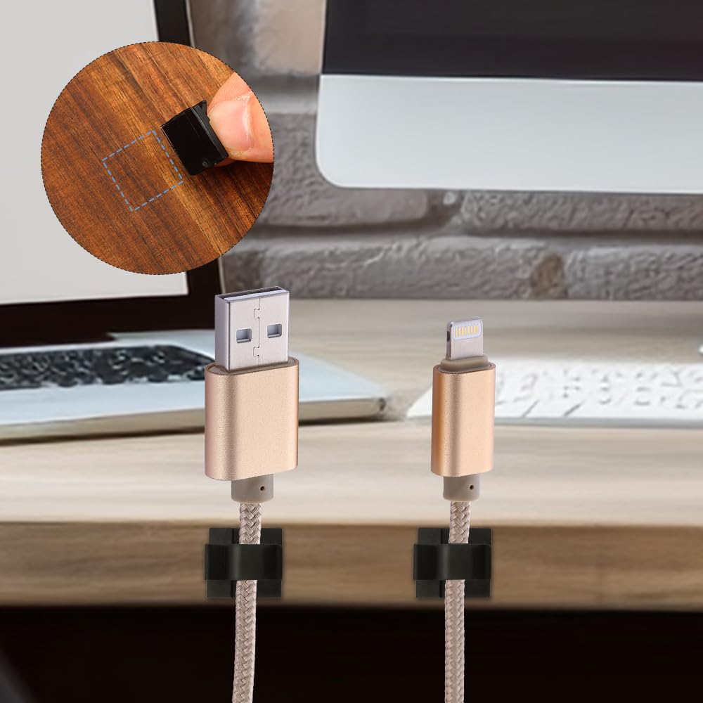 Q: What surfaces can the adhesive cable clips be used on?A: The adhesive cable clips can be used on a variety of surfaces including walls, glass, wood, and metal. They work best on flat and dry surfaces, ensuring a secure hold for your cables.