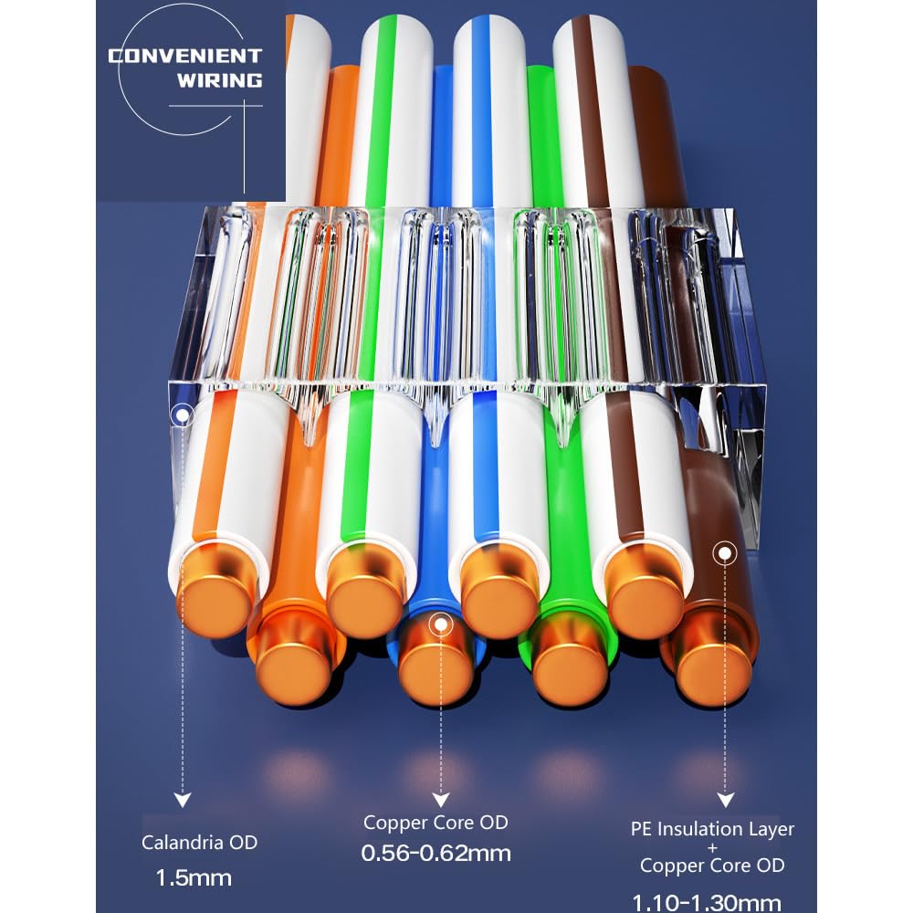 <1>Type: Cat7 Cat7A Rj45 8 Position And 8 Contacts Head, 8P8C Rj45 Head Connector Plug. <2>Color: Silver With Transparent. <3>The Cable Hole: 1.45Mm. <4>Main Item Size: 3.6 * 1.5 * 1.2Cm / 1.42 * 0.59 * 0.47In. <5>Pass The Strict Test Standard: Permanent Link And Channel Mode Test. <6>Compatible To Cat6A, Cat7, Cat7A, Cat8 Rj45 Sockets. <7>In Line With International Standards, 100% Test Approved. <8>Tia/Eia And Iso Certification Approved. <9>Compatible To Both T568A And T568B Wiring Schemes. <10>Apply To Switch, Wireless Device, Modem, Hub, Adsl, Pc, Tv, Digital Device.