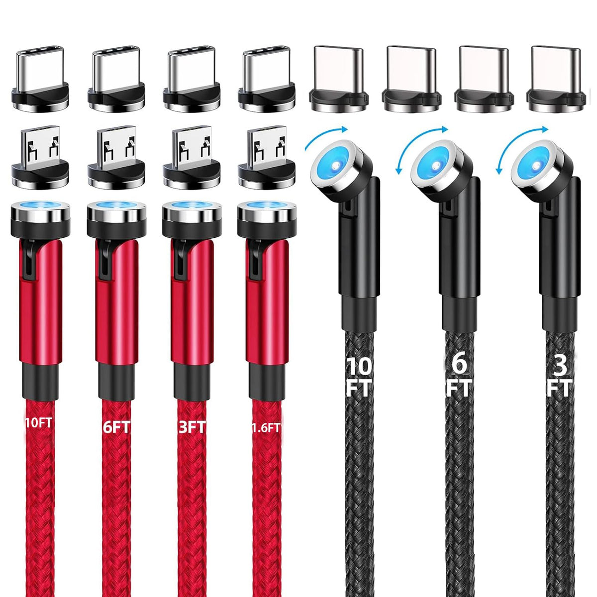 540� Rotation Magnetic Charging Cable(7 Pack, 1.6Ft/3.3Ft/3.3Ft/6.6Ft/6.6Ft/10Ft/10Ft)Nylon Braided Usb C Magnetic Phone Charger, 3 In 1 Magnetic Cable Compatible With Micro Usb, Type C Iproduct Etc