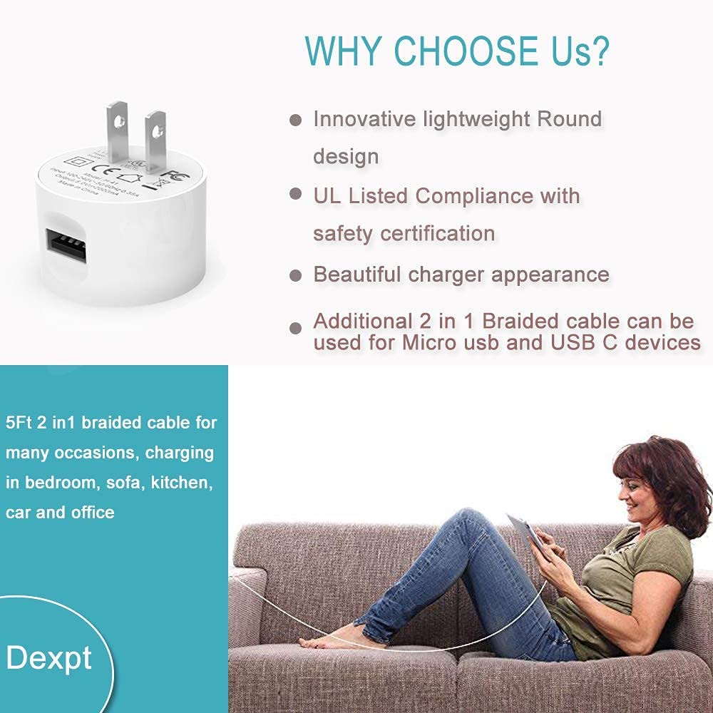 5Ft 2 In 1 Charger Fit For Samsung Galaxy Tab A E,S,S2,3,4, 10.1'' 7.0'' 8.0'' 8.4'' 9.6'' 9.7'',Sm T580/T380/T280/P580/T387/T37
