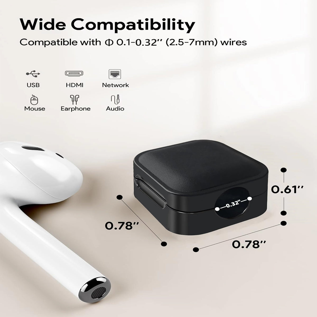 Q: What types of cables can I use with these magnetic cable clips?A: These magnetic cable clips are designed to securely hold cords with a diameter of up to 0.27 inches (7mm), making them suitable for mobile phone charging cables, USB cables, HDMI cables, computer power cords, and kitchen appliance cords.