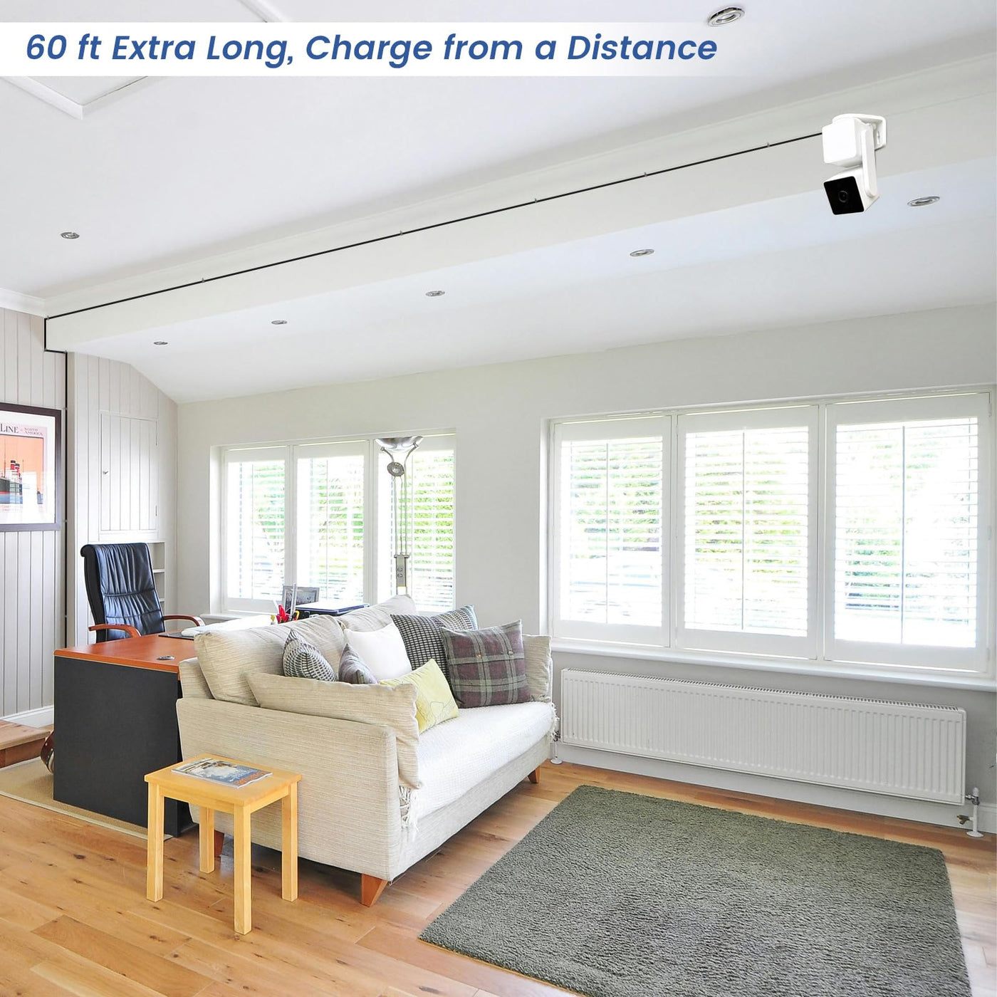 60 Ft Extension Cable For Wyze Cam Pan V3 Outdoor Camera, L-Shaped Flat Power Cord, Black