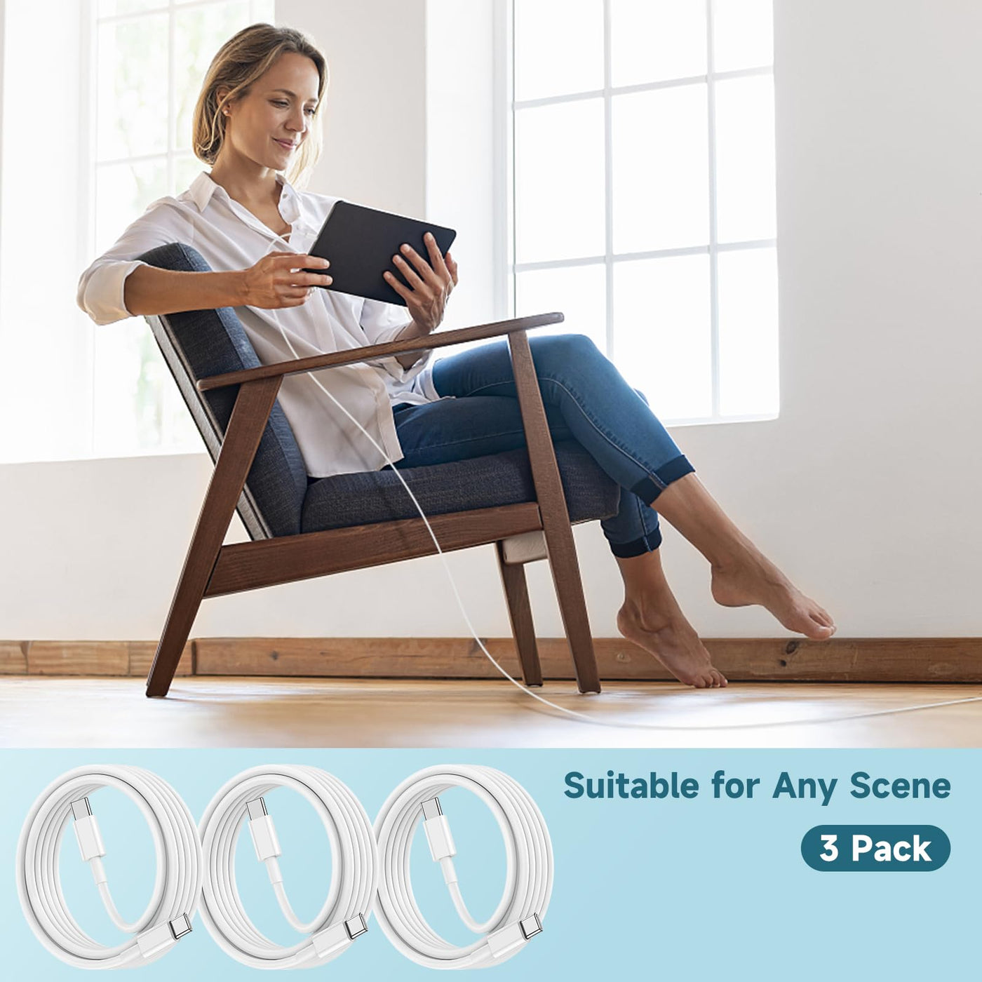 60W Usb C To Usb C Cable [3Pack] For Iphone 15 Fast Charging Cable,10Ft Long Usb-C To Usbc Power Cord For Iphone 15/15 Pro/15 Plus/15 Pro Max,Macbook Pro Air/Ipad Air 4/5/Ipad Pro 12.9/11(White)