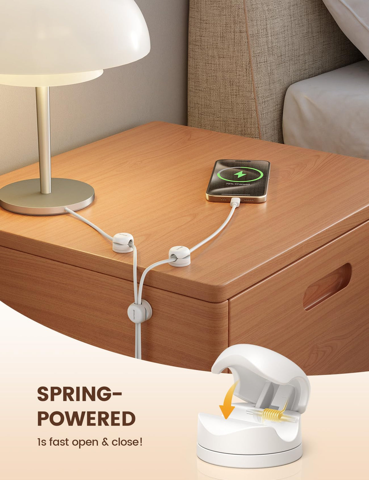 Q: What makes the 360° rotatable design beneficial for cable management?A: The 360° rotatable design allows you to easily spin and position cords in any direction, preventing them from getting tangled or damaged. This flexibility ensures that your workspace, whether it's a desk or nightstand, stays tidy and organized.