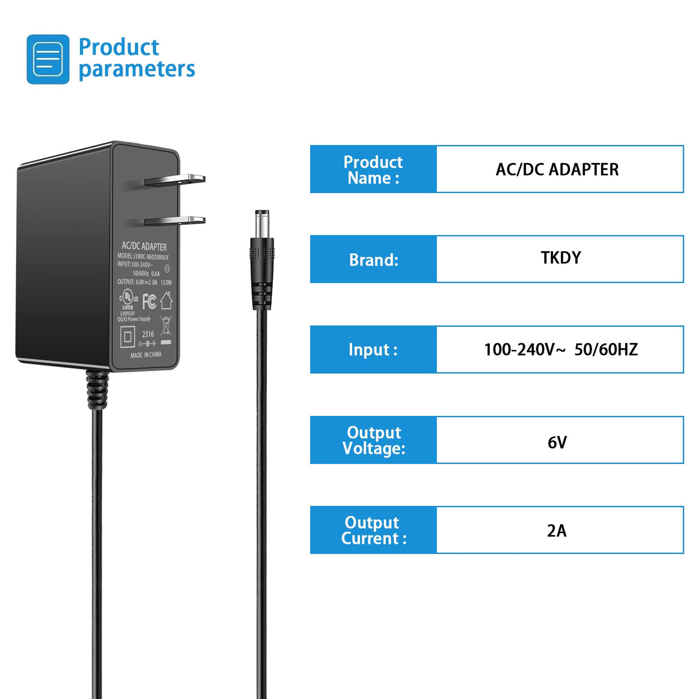 6V 2A Power Supply Cord Charger For Proform Elliptical Bike 6.0 Ce 7.0 Re 850 510E 480 490 500 600 Le, 390 395 475 510 Ex, 400 700, Nordictrack Gx 2.7 Act Cardio Cross Trainer Elliptical Bike.