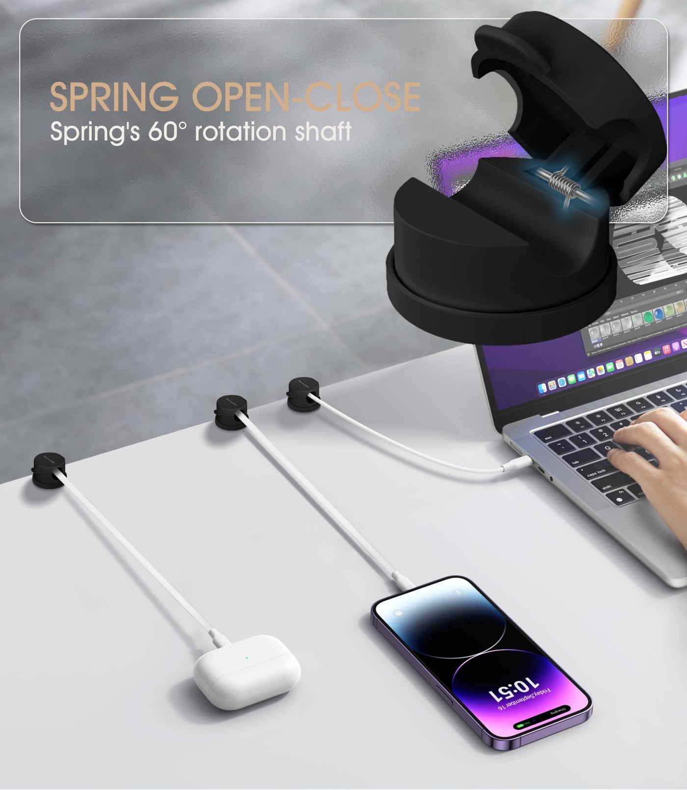 Q: How does the spring design of the Nearockle cable clips work?A: The spring design allows for quick locking and unlocking of cables, enabling you to easily place and remove your mobile phone charging cables, HDMI cables, and other household wires with just one hand.