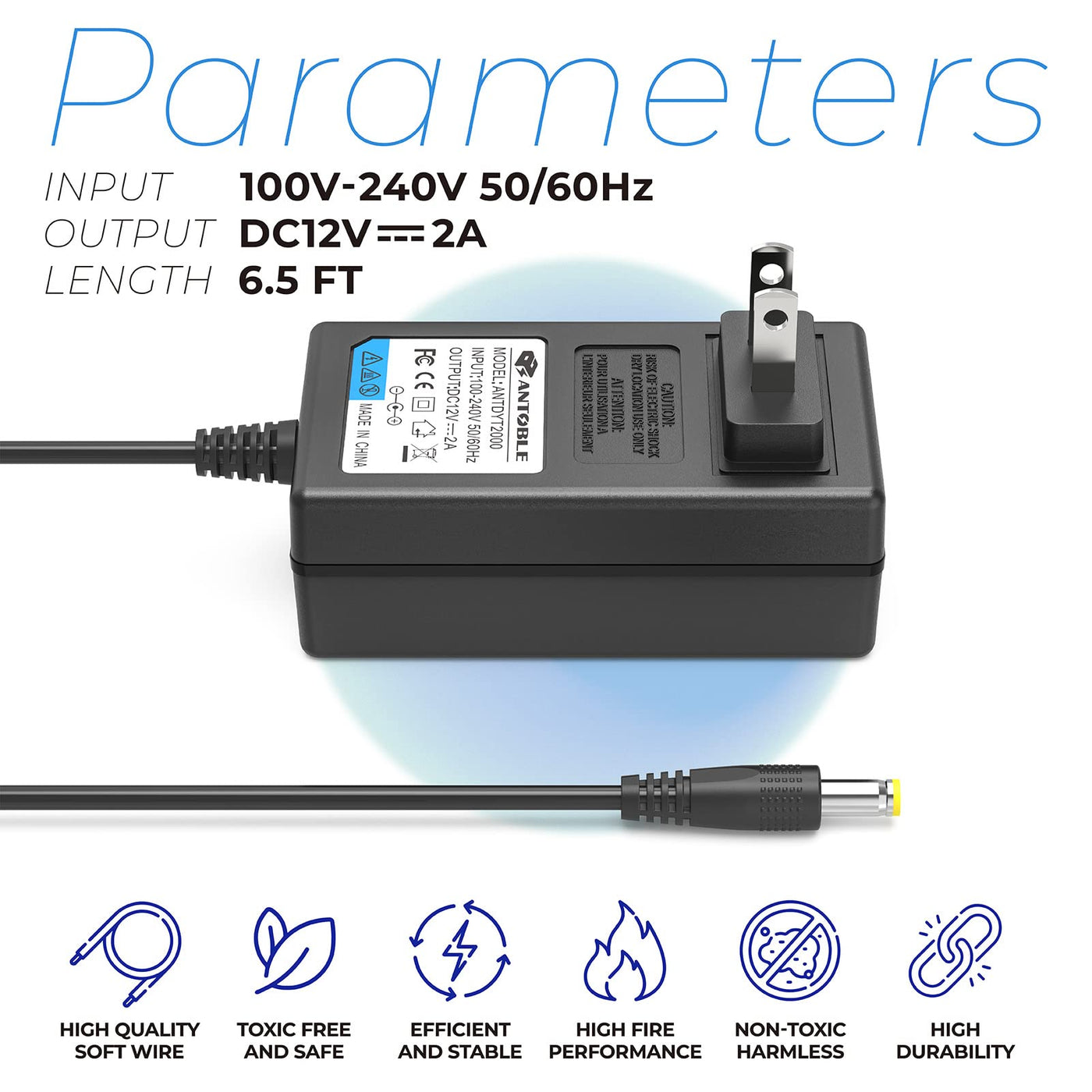 Input:100-240V 50-60Hz; Output:12V 2A; Total Cord Length Is Extended To 6.5Ft / 2M.
