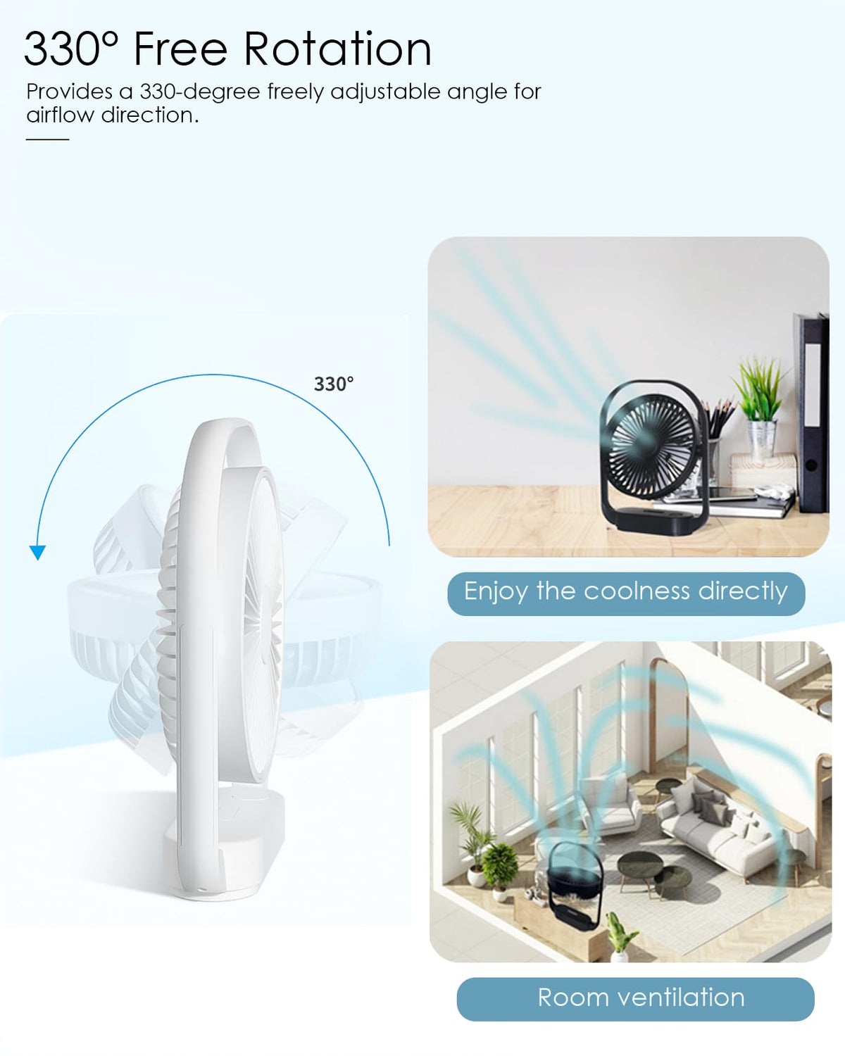 Acemining Fan, Silent Fans & Cooling, Rechargeable Fans, Desk Fan With 4 Speed, Usb Fan With Night Light, 330 Rotation Electric