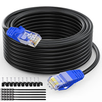 Aimyzii High Performance Cat6 Outdoor Ethernet Cable. Product Features Compatible With Routers, Switches, Printers, Laptops, Computers, Gaming Consoles, Modems, Scanners, Televisions,Network Switch And More. Supports Up To 10Gbps Data Transfer And 550Mhz Bandwidth. Backwards Compatible With Cat5E, Cat5 Ethernet Cable. Double Jacket Satisfy Indoor And Outdoor Use,Can Be Directly Installed Outdoors Or Buried-Able. Double Jacket (Pvc Inner Jacket And Lldpe Jacket) Can Effectively Resist Extreme Outdoor Weather Conditions. Lldpe Jacket Has Waterproof, Corrosion-Resistant, Uv Resistant, Frost Resistant, High-Temperature, Moisture-Proof, And Windproof Properties. Product Specification 4 Twisted Pairs Conductors,24Awg,Cca Conductors Double Jacket (Pvc Inner Jacket And Lldpe Jacket),Cable Od:6.80.2Mm Cable Use Highly Durable Weatherproof And Uv Resistant Lldpe Material Rj45 Connectors With Gold-Plated Contacts Provide 1 Year Warranty Product Features Package Include:1 Piece Cat6 Ethernet Cable,25 Pieces Cable Ties,50 Pieces Cable Clips.
