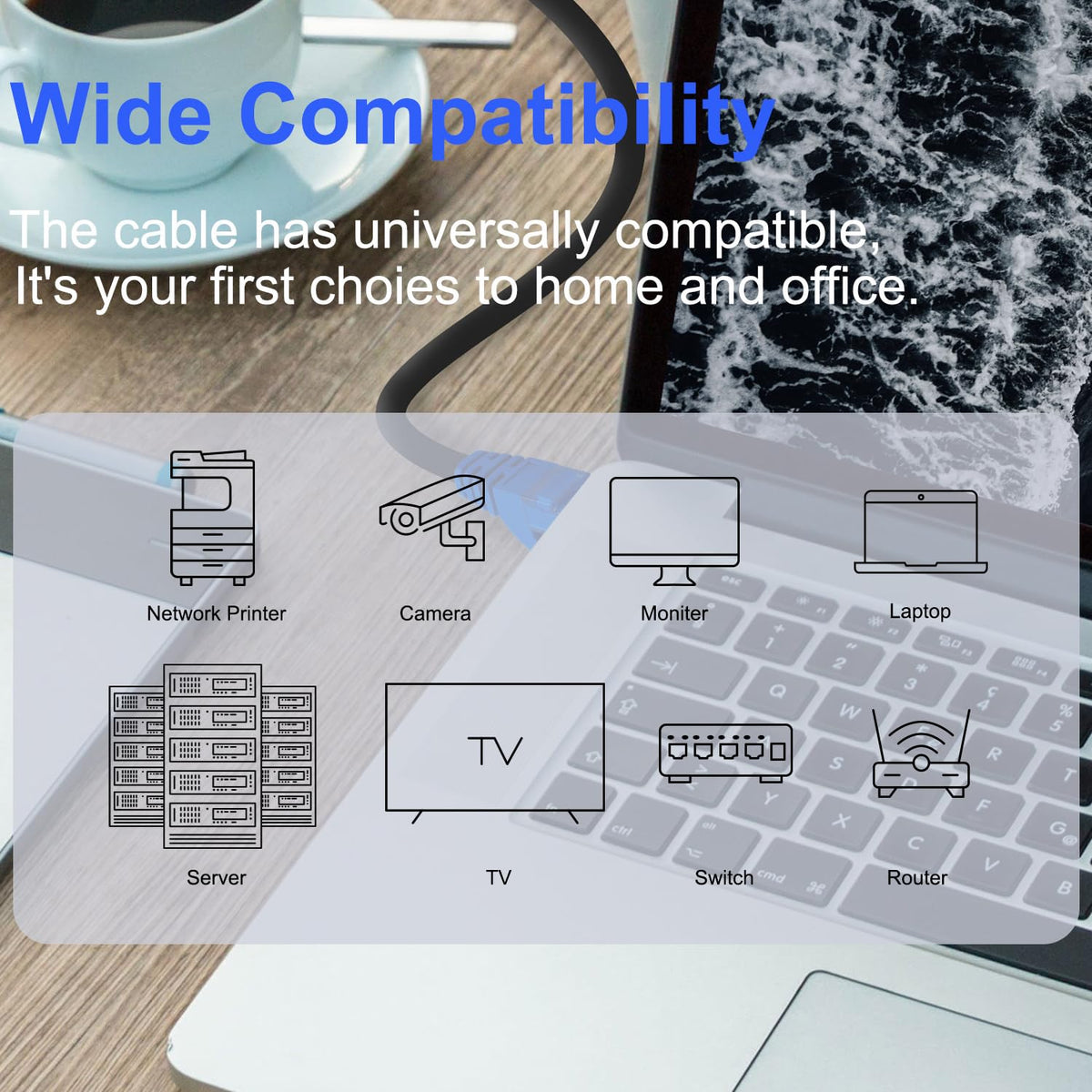 Q: What devices are compatible with this Ethernet cable?A: The Aimyzii Cat6 Ethernet Cable is compatible with a wide range of devices including routers, switches, laptops, gaming consoles, printers, and more, making it a great choice for home and office networking.
