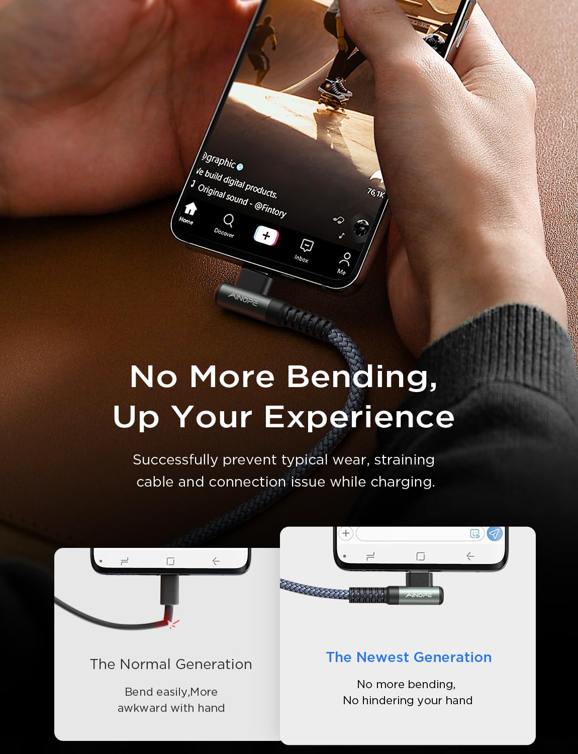 Ainope 100W Usb C To Usb C Charger Cable 1.5Ft, Usbc To Usbc Fast Charging Cable Right Angle Usb C Cable Compatible With Macbook