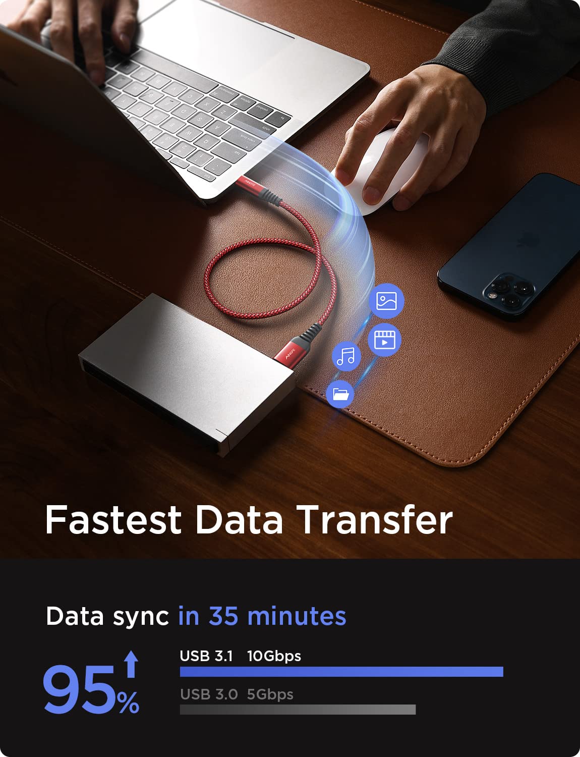 Ainope 10Gbps Micro B To Usb C Hard Drive Cable 1.6Ft/0.5M, [Nylon Braided] Usb C To Micro B Cord, Usb C To External Hard Drive
