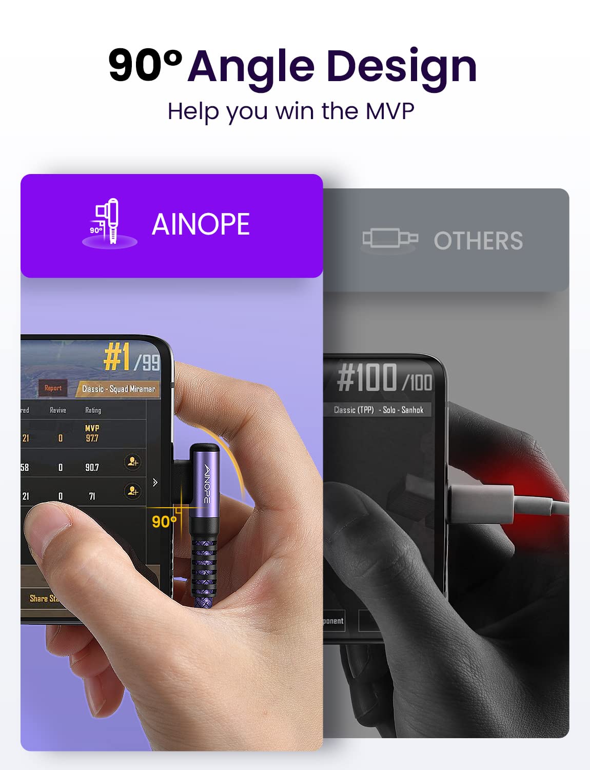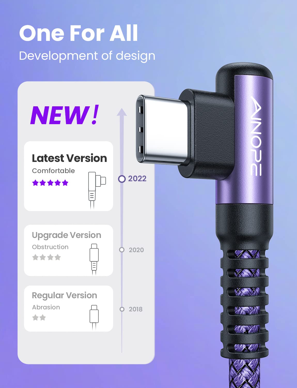 [3.1A Turbo Charging] Ainope Usb Type C Cable Supports Fast Charging Up To 9V/3.1A (40% Faster) Compared With Other Cables Which Provide 5V/2.4A Output. And Data Transfer Speeds Up To 480Mbps. *Please Note: 1.This Cable Can Charge Google Pixel 2/3/3Xl Normally, But It May Not Deliver Fast Charging Speed. 2. Using An Adapter Of At Least 5V/2A If Charging For Ipad. | [Upgraded Exclusive Right Angle Design] Usb Fast Charge Cable With An Innovative 90 Degrees '' L '' Design. It'S User-Friendly Design More Convenient And Comfortable For Playing Games, Watching Videos, Reading E-Books And Online Shopping When You Charging. [ Note: The Thickness Of The Compatible Mobile Phone Case Charging Port Is 5.5Mm.] | [Never Bended Cable When Charging] Usb C Cable Has Electronic Safety Certifications That Comply With Appropriate Standards, It Built-In Laser Welding Technology, Which Ensure The Metal Part Won'T Break. The Longer Sr Anti-Break Design Enhances The Durability Of The Cable. With 40,000+ Times Bend Test, The Flexible And Resistant Double-Braided Nylon Right Angle Type C Cable Longer Service Life And Will Never Bended And Rupture. | [Important Note Before Purchase] *Reminder* This Usbc Charge Cord Will Not Provide You With Fast Charging Alone, You Will Need A Power Block Rated For Fast Charging And A Phone Capable Of The Same Together. 4X Premium Nylon-Braided Usb C Charging Cable (3.3/3.3/6.6/10Ft) For You Anytime, Anywhere. | [Universal Compatibility] Usb Charger Cable Can Fast Charge And Sync Well Compatible With Galaxy S20/S20+ Ultra S10 S10E S9 S8 Note 10 9 8, Moto Z/Z2, Lg G5/G6/V20/V30 And Other Usb-C Devices.