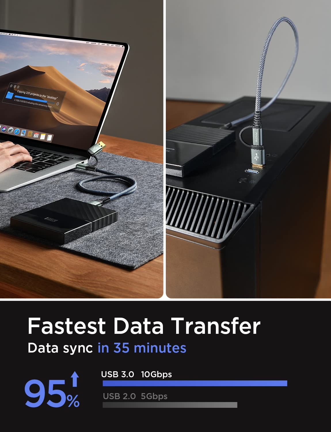 Ainope Usb A/C To Micro B Cable 3.3Ft/1M [Nylon Braided], Type A/C Male To Micro B External Hard Drive Cable For Seagate Wd, Macbook Air/Pro Samsung Galaxy S5