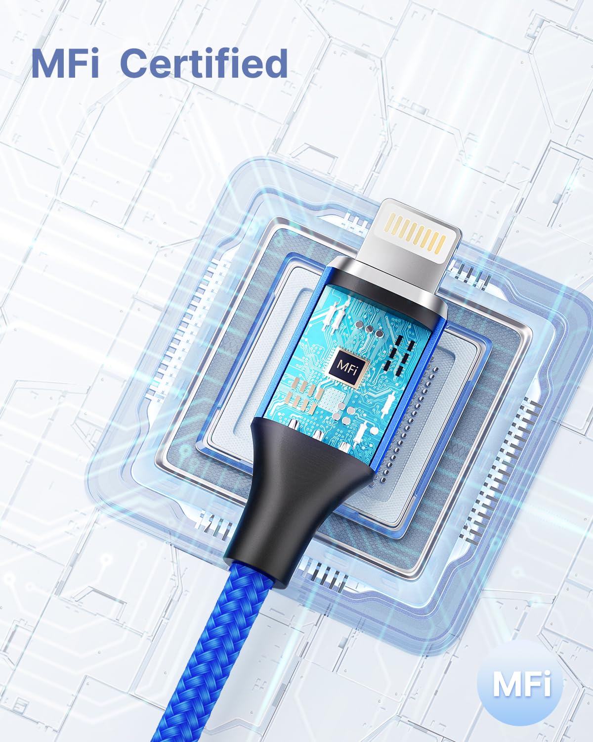 Aioneus Iphone Charger 3Ft 2Pack, Iphone Charging Cable Mfi Certified Lightning Cable Nylon Braided Fast Iphone Charging Cord For Iphone 14 13 12 11 Pro Max Xr Xs X 8 7Plus 6 6S Se Ipad Blue