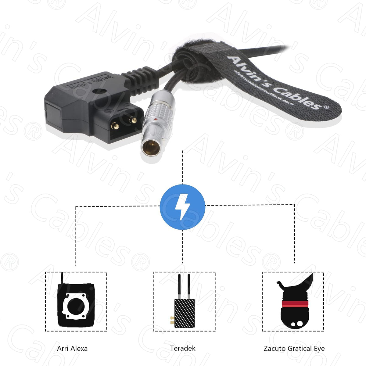 Alvin'S Cables Flexible 2 Pin Male To D Tap Power Cable For Teradek, Smallhd Monitor, Vaxis 60Cm|23.6Inches Braided Wire