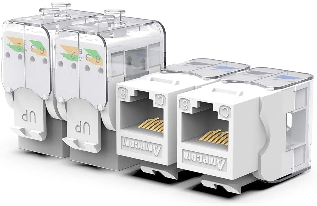 Ampcom Cat6 Keystone Jack Tool Less Rj45 Utp, No Punch Down Tool Required Module Coupler 12 Pack White