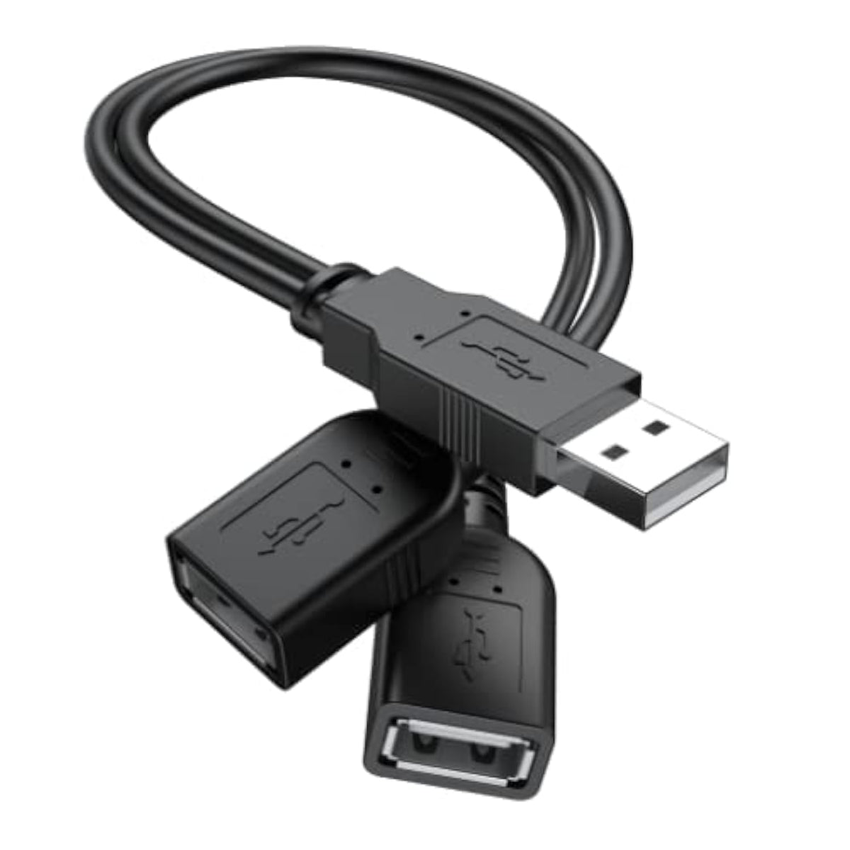 ANDTOBO USB 2.0 A Male to Dual USB Female Y Splitter Hub Power Cord Extension Adapter Cable - Black, 1 Pack