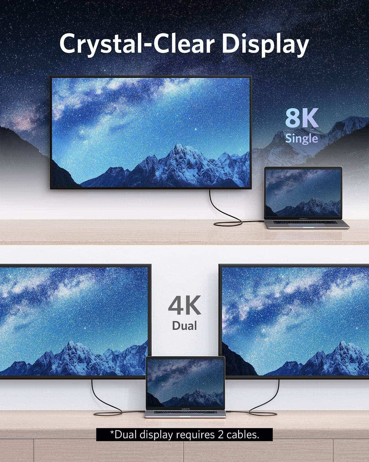 Anker Thunderbolt 4 Cable 2.3 Ft, Usb C To Usb C Cable, Supports 8K Display/40Gbps Data Transfer/100W Charging, For Iphone 15 Pr