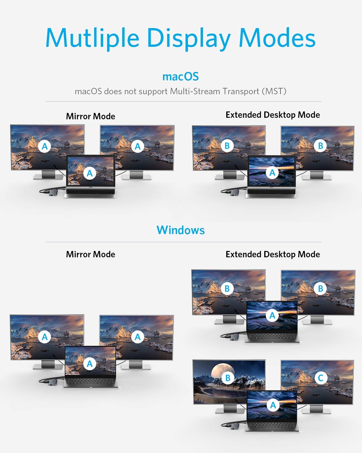 Huge 11-Port Expansion: Equipped With A Usb-C Power Delivery Input Port, An Hdmi Port, A Displayport, 1 Usb-C Data Port, 3 Usb-A Ports, 1 Ethernet Port, An Aux Port, An Sd Card Slot, And A Microsd Card Slot. | Multi-Monitor Display: The Hdmi Port And The Displayport Both Support A Single-Monitor Display Of Up To 4K@60Hz. Connect To Both Simultaneously To Enjoy Crystal-Clear Streaming Or Mirroring Across 2 Displays At Up To 2K@60Hz. | Pass-Through Charging: Supports Up To 100W (Minus 15W For Operation) Pass-Through Charging So You Can Power Up Your Laptop While Accessing The Hub