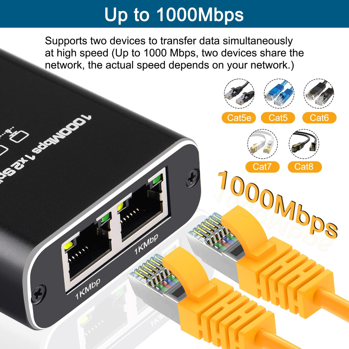This High-Speed Ethernet Splitter Allows You To Easily Share A Single Internet Connection Between Two Devices. It Supports Transfer Speeds Up To 1000Mbps, So You Can Stream, Game, And Work Simultaneously Without Lag. Simply Connect Input End To Your Modem Or Router Using An Ethernet Cable. Two Additional Output Ports Let You Plug In Devices Like Laptops, Desktops, Or Game Consoles To Get Online. A Handy Usb Power Cable Is Also Included To Supply Power. Setup Is Quick And Hassle-Free, No Extra Drivers Needed. This Affordable 1 In To 2 Out Ethernet Splitter Makes It Possible To Network Multiple Rooms Or Offices From A Single Source. Ideal For Households, Small Businesses, And More - Share Your Internet Access Between Two Devices Easily And Affordably.