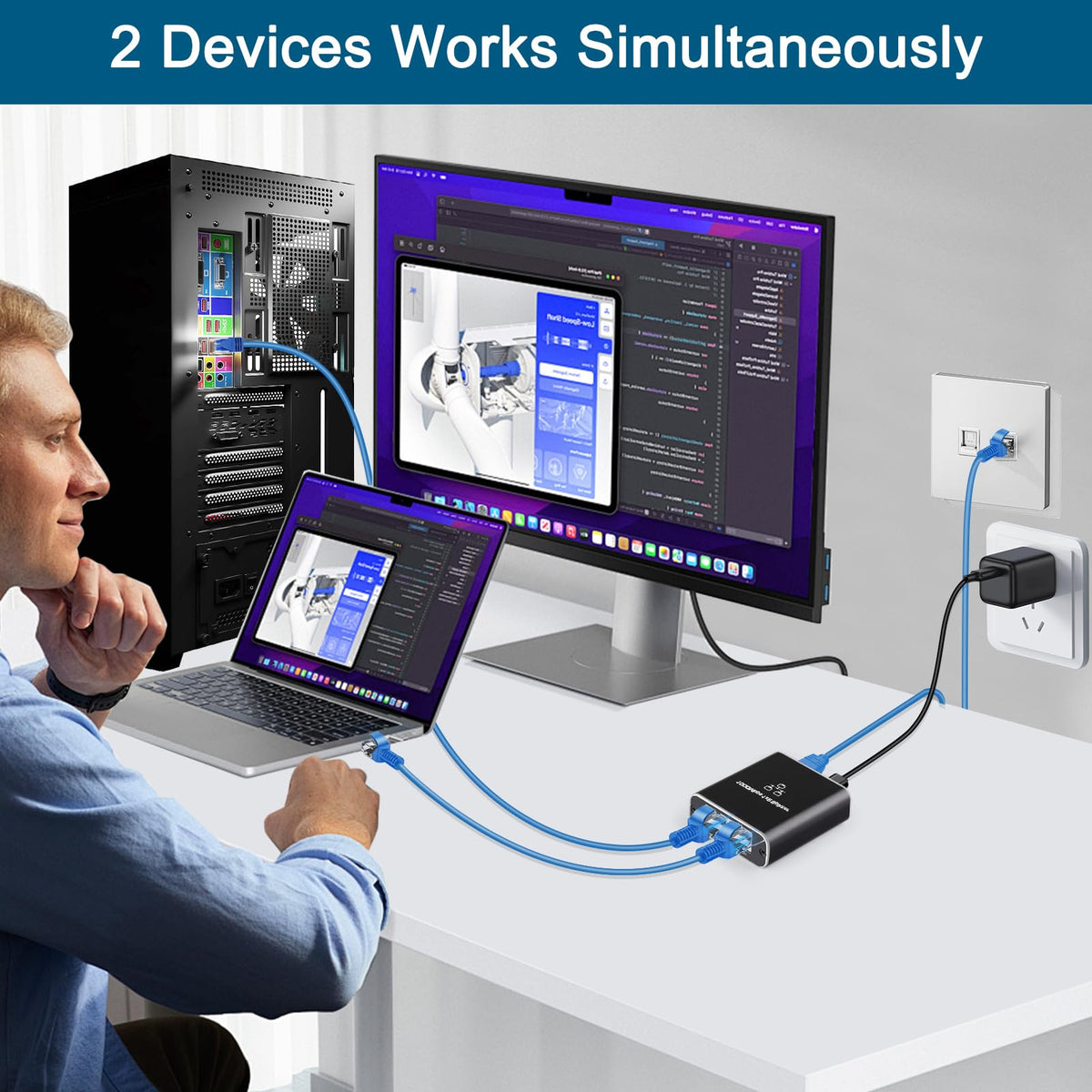 Ankey Ethernet Splitter 1 To 2 High Speed 1000Mbps, Ethernet Cable Splitter, Internet Splitter With Usb Power Cable, Ethernet Po