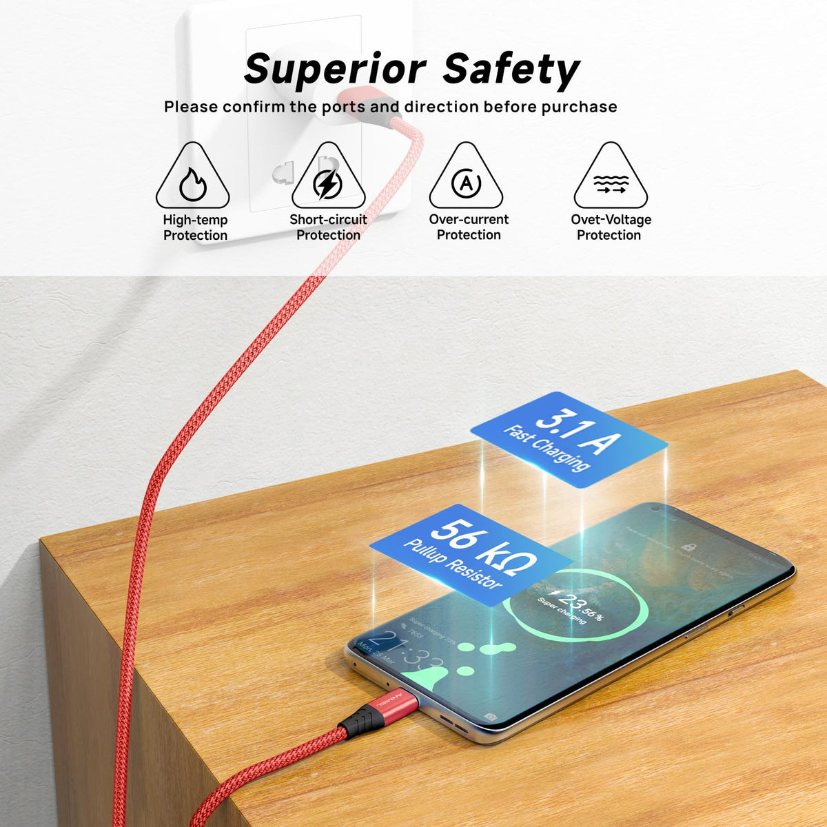 Anmiel Usb C Cable [4 Pack/10Ft] 3.1A Usb C Fast Charging Cable, Usb Type C Charger Cable Nylon Braided Data Cable Qc 3.0 Sync C