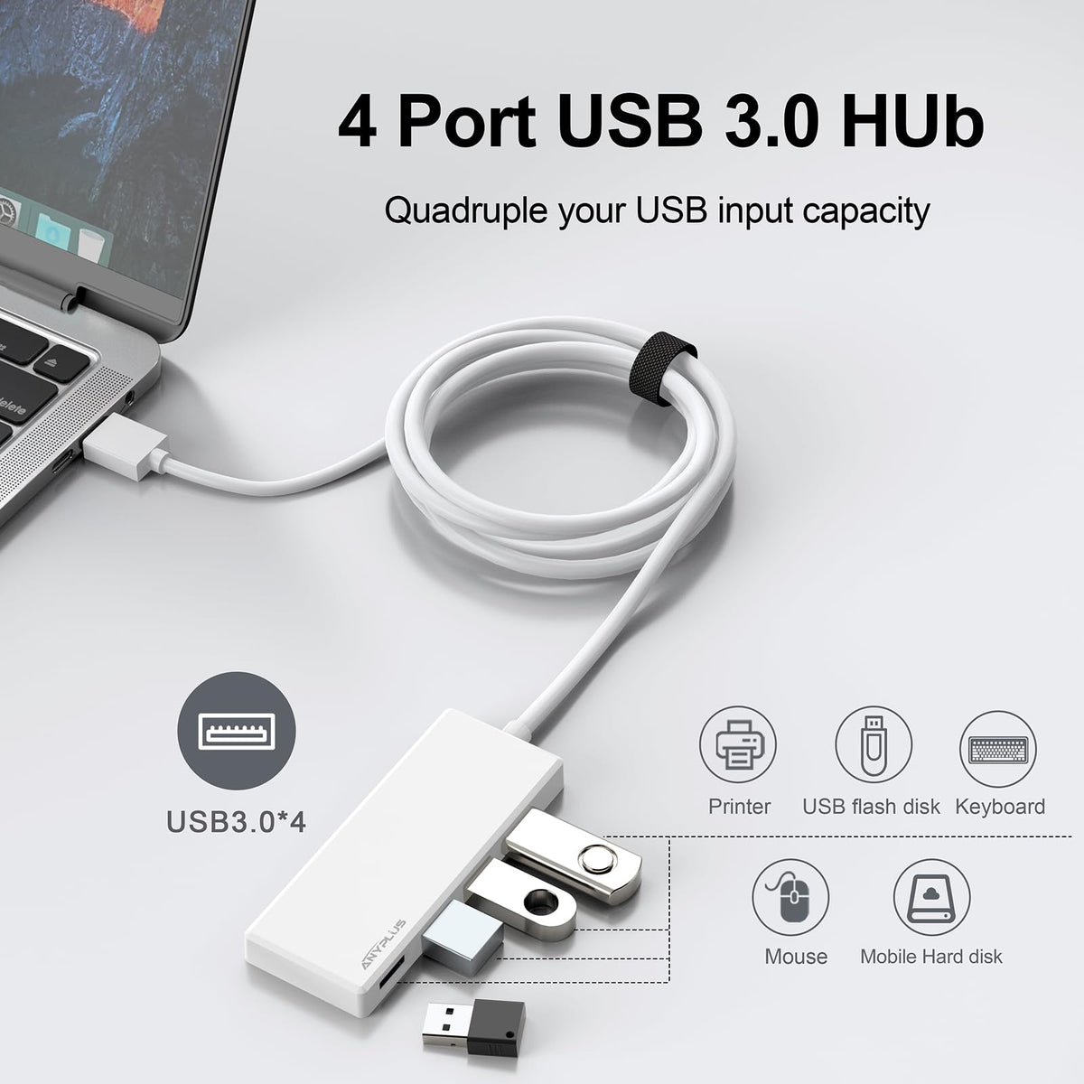 Anyplus Usb Hub, Multiport Usb Splitter Adapter, 2 Ft Long Cable Usb 3.0 Hub, Usb Extender For Laptop, Pc, Imac, Surface Pro, Ma
