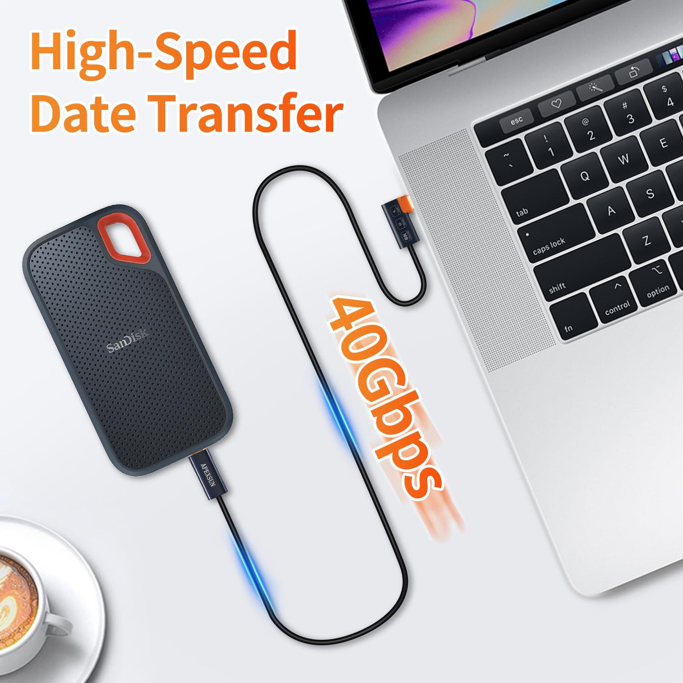 Apexsun (2-Pack)Thunderbolt 4 /Usb4.0 Usb C Cable,Usb C Elbow To Usb C Cable Support Thunderbolt 4/3,Usb4,240W Charging ,8K Display,40Gbps Data Transfer For External Ssd, Egpu,Docking,Macbook,Ipad Pro, Phone And More,E-Mark Chip In Black Features: Superspeed Data Transfers: Thunderbolt 4 And Usb 4.0 Cable Delivers Data Transfer Speeds Of Up To 40 Gbps. 8K Display: Supports Single 8K@60Hz Dual 4K@60Hz Displays With Exceptional Video Bandwidth, Or Display 4K On Two Screens Simultaneously. Fast Charging: Built-In E-Mark Chip And Safely And Reliably Delivers Up To 20V 5A 100W Of Power. Ensure You'Re Giving Your Device An Smart And Optimized Charge.