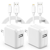 Ipad Charger Wall Charger And Cord 10 Ft 2Set,12W Ipad Charger Fast Charging Block & Ipad Charger Cord 10 Ft Certified Lightning Cable For Ipad 7Th 8Th 9Th Generation,Ipad Airmini,Iphone