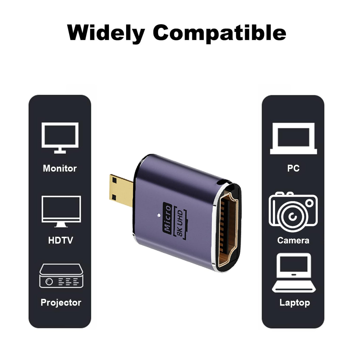 ?Micro Hdmi To Hdmi Adapter?This Micro Hdmi To Hdmi Adapter Can Easily Converts Your Camera, Laptop And Tablet With Micro Hdmi Port To A Standard Hdmi Interface On Hdtv, Monitor, Or Projector. ?Video Resolution Up To 8K?Supports Up To 8K@60Hz Video Output, Backward Compatible With 4K@120Hz, 4K@60Hz, 4K@30Hz, 2K@240Hz, 1080P@240Hz, 1080P@120Hz, 1080P@60Hz, 1080P@30Hz Etc. ?Ultra Durability?Ultra Thin Size, Ultra Compact Design, Durable Aluminum Alloy, Fine Appearance Details And Strict Quality Inspection Standards. And Does Not Require Additional Drivers And Software. ?Widely Compatible?Compatible With Sony A6500 A6000 A6400 A73 A7S Camera, Gopro Hero7 Hero6 Hero5 Hero4 Hero3 Hero3+ Hero2018, Raspberry Pi 4, Canon Eos M50, Nikon B500 And More Devices With Micro Hdmi Port.