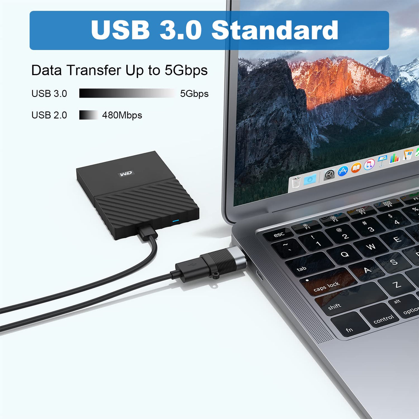 Q: What is the maximum data transfer rate of the AreMe USB C Adapter?A: The AreMe USB C Adapter provides a maximum data transfer rate of 5Gbps for USB C to USB 3.0 connections and 480Mbps for Micro USB to USB C connections, ensuring fast and efficient data transfer.
