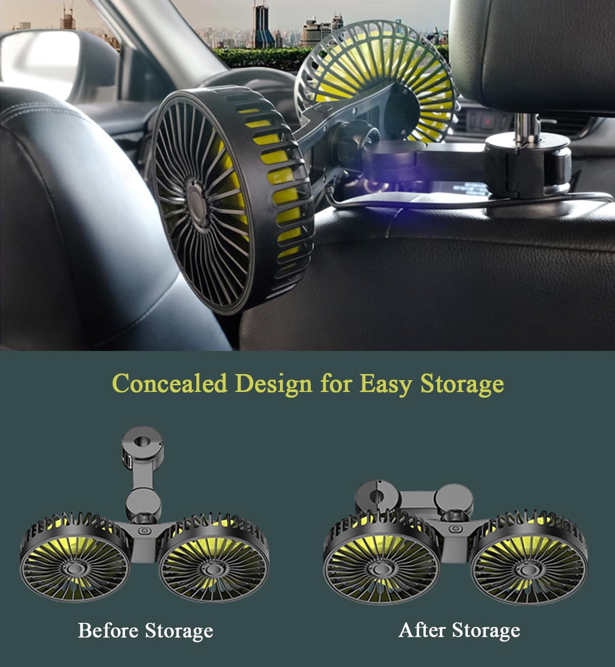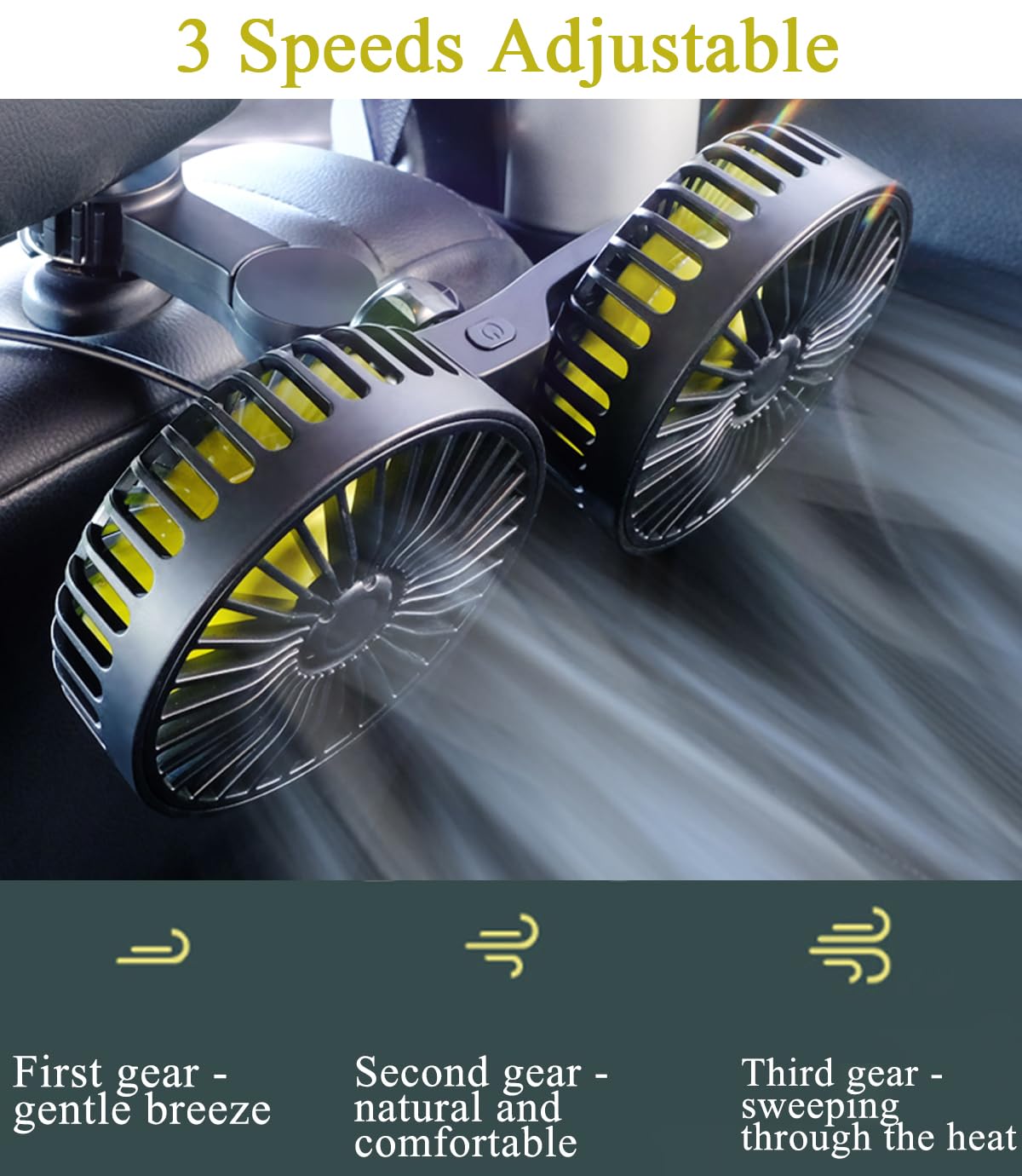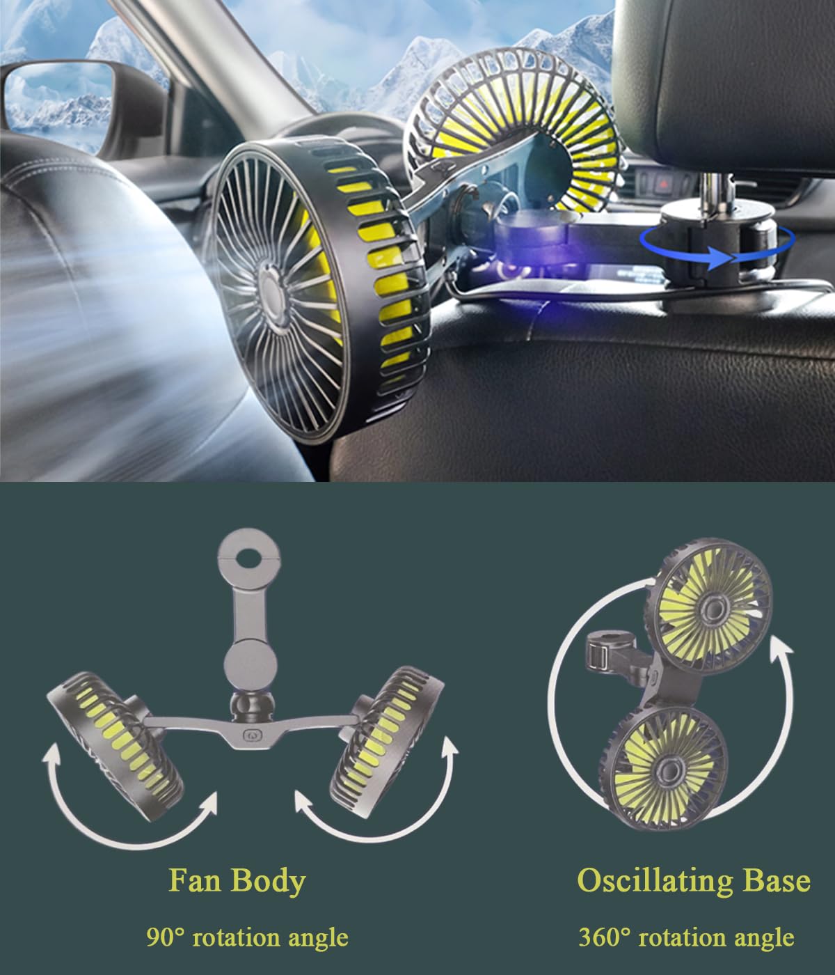[New Usb Car Fan]: Car Fan Can Rotate 360 Degrees, 12V/ 24V Car Fan With 2 Rotatable Fan Heads Can Quickly Help Cool Down The Temperature, Also Can Reduce The Humidity Of The Windshield In The Car On Rainy Days, Quickly Remove The Excess Smoke, Dust Or Pet Odour, Make The Backseat Air Circulate And Keep Fresh, Make The Backseat Passengers Or Pets Feel Cool And Comfortable In The Car. | [Powerful And Super Quiet]: 3 Speeds Can Be Adjusted From Soft To Strong. The Maximum Speed Is About 4000Rpm, Which Is Very Powerful For Its Compact Size. The Backseat Car Fan Has A Built-In 100% Pure Copper Brushless Motor, And The Unique Air Duct Design Makes The Lowest Noise Close To 30 Decibels. Works Quietly And Won'T Disturb Resting Children/Pets/Passengers. | [Adjustable And Portable]:Car Fan Comes With Durable Clips That Securely Fasten The Fan To The Back Seat Headrest. The Pole Supporting The Fan Can Be Rotated, You Can Adjust Different Angles At Will. No Tools Are Needed, It Is Easy And Quick To Install And Remove By Hand, It Only Takes A Few Seconds To Complete The Installation. The Rod Can Be Folded And The Design Of The Zip Lock Rotation Structure Allows You To Turn The Zip Lock To Store The Fan, Which Is Easy To Carry And Store, Bringing You A Cool Summer Day. | [Compatibility]: Car Seat Fan Is Powered By Usb, Compatible With Most Devices With Usb Port, The Fan Comes With A Usb Cable (5.9Ft Long), You Can Power The Fan Via Usb Port, Such As Car Charger And Mobile Power.Usb Power Supply Can Support Different Occasions. | [Wide Applications]: Usb Car Fan Is Suitable For All Family Cars, Suvs, Rvs, Kids' Cars And Trucks. Compared With Other Car Fans, This Rechargeable Wireless Car Fan Is More Convenient To Use In Summer. It Is Both Beautiful And Practical, You Can Take It With You On Camping Trips, Travelling Or Use It As A Handheld Fan.