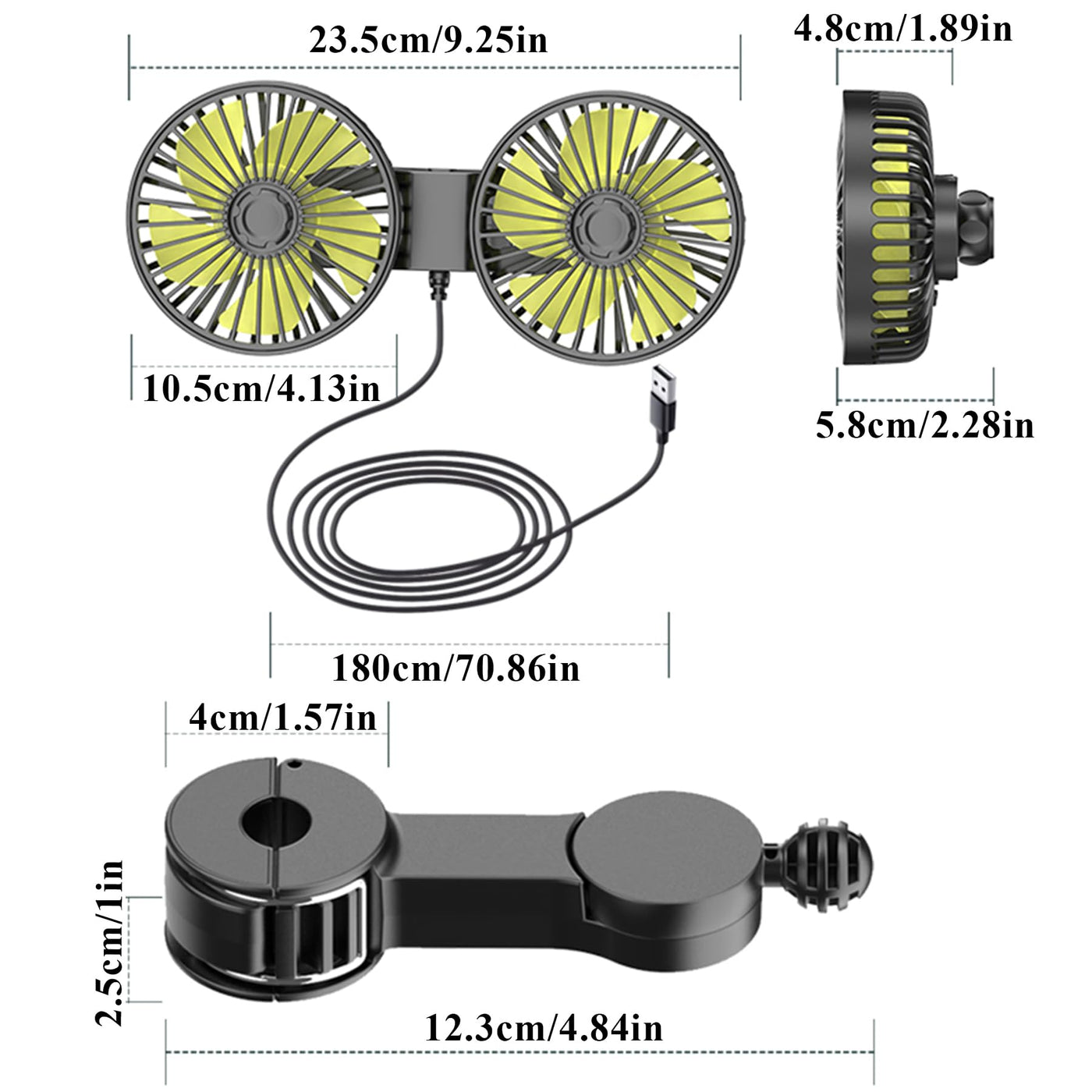 Asandh Car Fan, Dual Head Usb Car Fans For Backseat For Kids, 3 Speed Air Speed And 360 Rotating Rear Seat Cooling Carseat Fan 5
