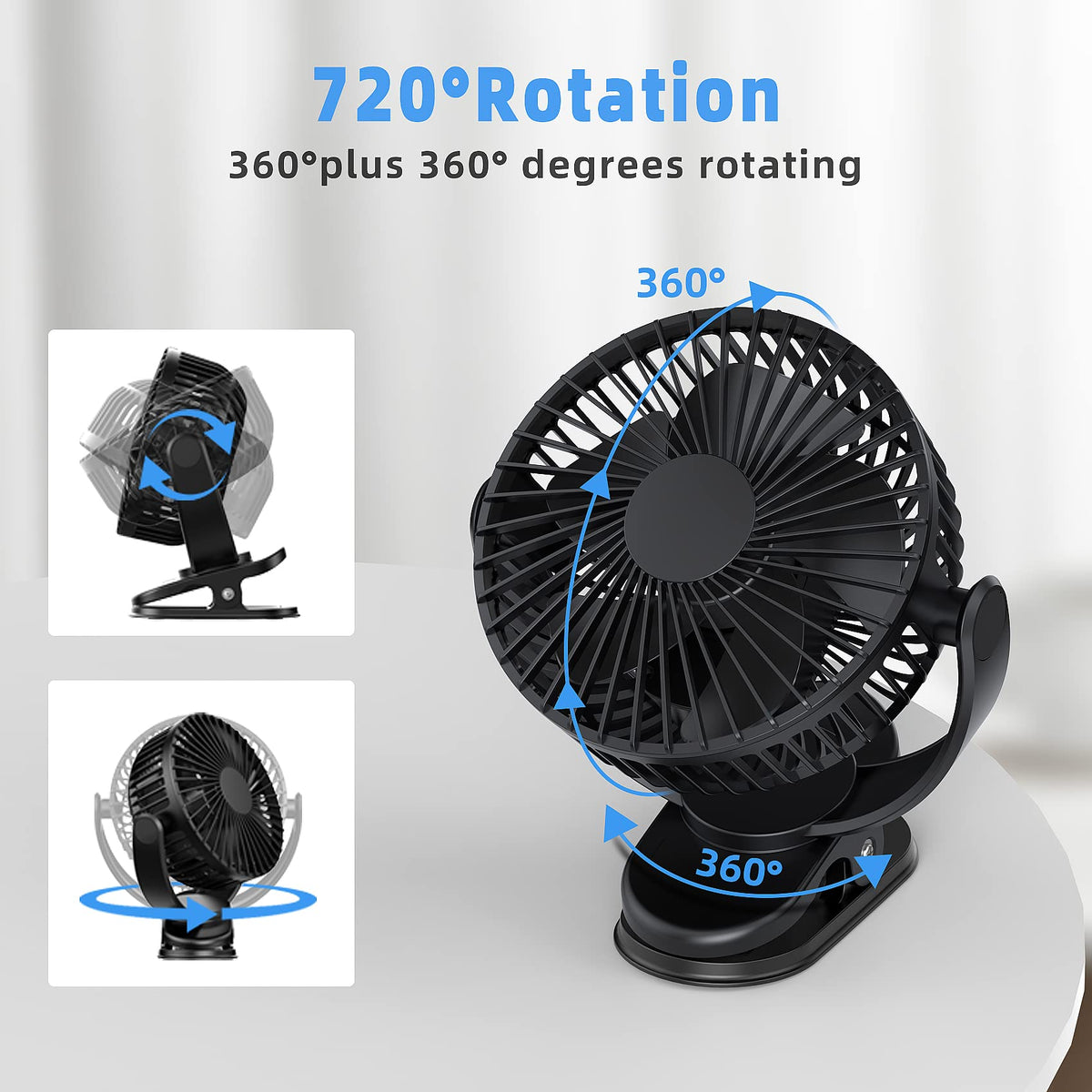 Atengeus Usb Fan, Rechargeable Portable Fan, Clip On Fan, Battery Operated Fan, 3 Speeds, 5000Mah Usb Desk Fan, 720�Rotation, Sturdy Clamp For Home, Camping, Treadmill And Car