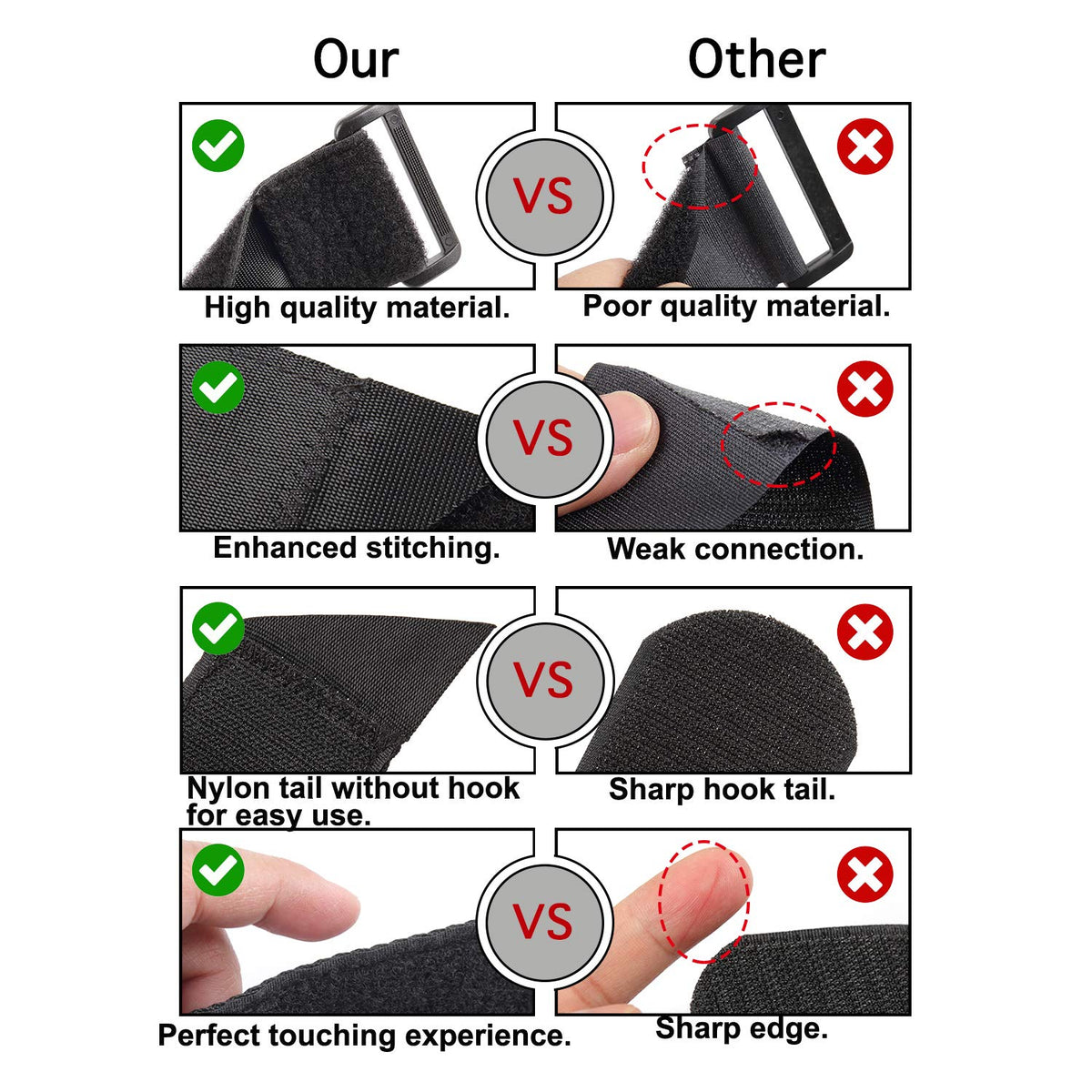Q: How durable are the Ayaport Cinch Straps?A: These cinch straps are made with high-quality nylon webbing and are designed with sturdy stitching, ensuring they are durable and long-lasting without the use of glue or adhesives.