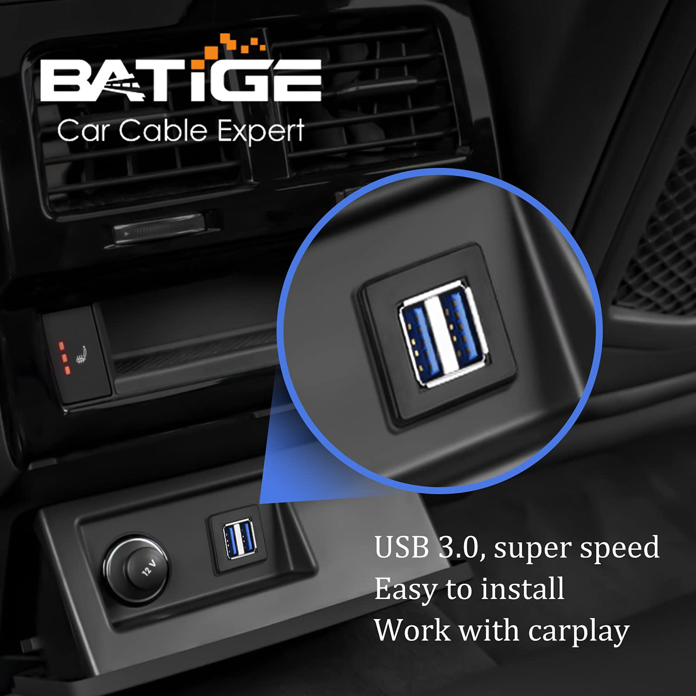 Batige Dual Ports Square Usb 3.0 Panel Flush Mount Extension Cable With Buckle For Car Truck Boat Motorcycle Dashboard 1Ft