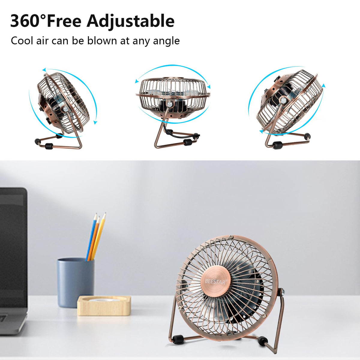 Beestar 4 Inch Desk Small Fan,Usb Mini Fan With Metal Construction,Powerful Usb Powered,360 Rotation Desk Fans Small Quiet,Small