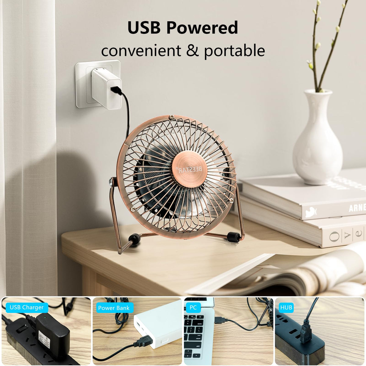 Beestar 4 Inch Desk Fan,Mini Fan With Metal Construction,Powerful Usb Powered, Small Plug In Fan,Personal Cooling Fan For Home Office Bedroom