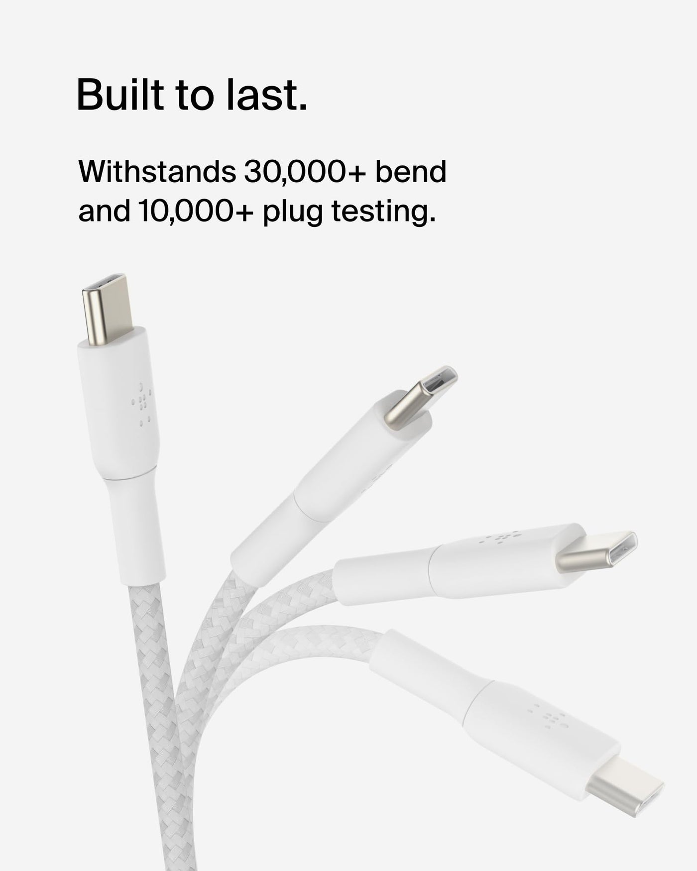 Get A Fast Charge, Up To 50% In As Little As 29 Minutes With Strong Usb-C To Usb-C Cables That Are Built To Last. Use Them At Home, In Your Car, Or Anywhere You Need To Sync Music, Photos, Or Data And Charge Your Devices. Tested To Survive 30,000+ Bends, And Made With Double-Braided Nylon, These Usb-C Fast Charging Cables Stand Up To The Most Rigorous Daily Use So You Dont Have To Keep Replacing Them. Theyre Also Usb-If Certified To Ensure Youll Always Have A Superior Experience. Belkin Is An Established Accessories Market Leader Creating High-Quality, Innovative Tech Solutions For 40 Years. Specifications: Usb-If Certified 60W (3A/20V) Fast Charging Usb2.0 Standard - Up To 480Mbps Data Transfer Speed 30,000+ Bends 10,000+ Plug-Ins Compatibility: All Usb-C Devices Including But Not Limited To Iphone 16, Iphone 16 Plus, Iphone 16 Pro, Iphone 16 Pro Max, Google Pixel, Galaxy Note, Samsung Galaxy S25, S24, Ipad Pro, Usb-C Tablets, Macbook, Earbuds, And Much More 100% Plastic-Free Packaging 2-Year Coverage Package Includes: Boostcharge 6.6Ft Usb-C To Usb-C Cable Line Extension