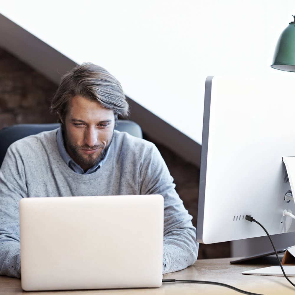 Q: What is the length of the Belkin Thunderbolt 3 Cable, and is it suitable for desk use?A: The cable measures 1.6 feet (0.5 meters) in length, making it a compact solution that fits seamlessly into any desk environment, ideal for connecting Thunderbolt peripherals such as docks and hard drives.